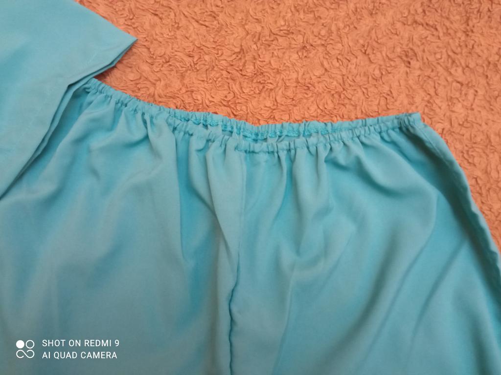 Костюм понравился. Очень приятная тонкая ткань. Носить буду летом. Размер блузки как раз, брюки широкие, цвет шикарный. Спасибо. Рекомендую.