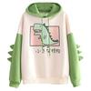 Толстовка с длинными рукавами и рисунком динозавра из смеси хлопка для девочек-подростков, зимняя с капюшоном для дома