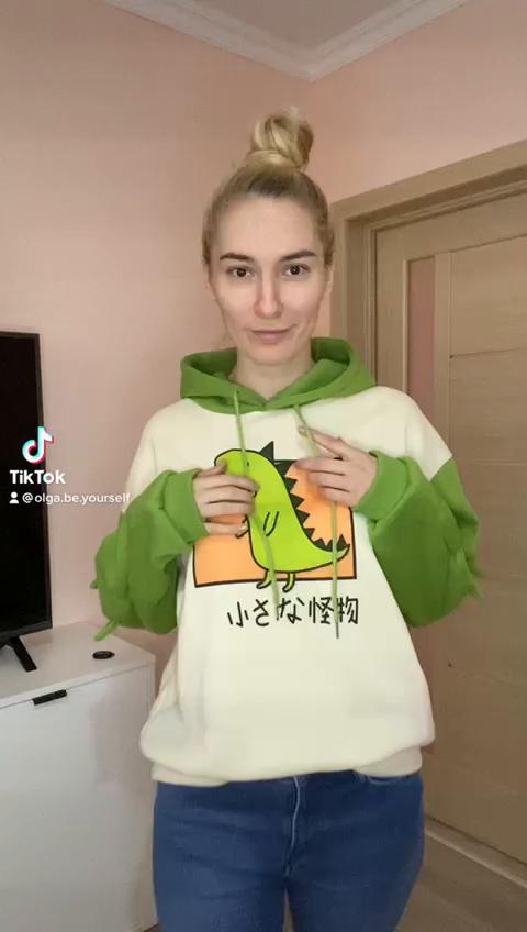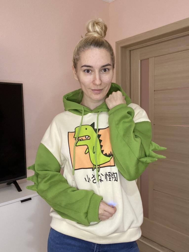 Толстовка с длинными рукавами и рисунком динозавра из смеси хлопка для девочек-подростков, зимняя с капюшоном для дома — купить товар онлайн с бесплатной доставкой по всему миру!
