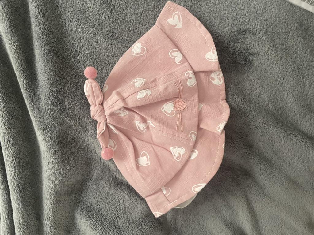Доставка быстрая, на почту. Красивый чепчик. Регулируется завязочками. От 4 месяцев до 9 подойдёт, в зависимости от ребенка. Цветок на застежке. Козырёк плотный. Конечно надо отладить.
