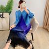 Женское платье с кисточками, осеннее плиссированное платье с рукавами «летучая мышь», свободное модное длинное платье