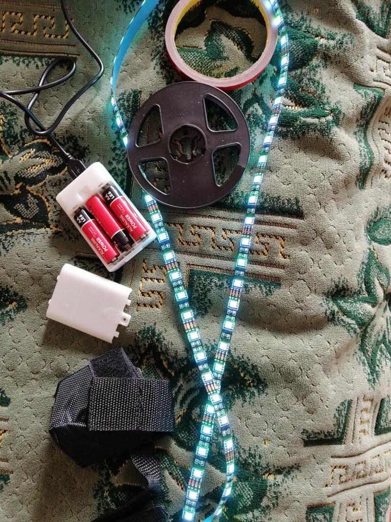 Соответствует описанию есть чехол, в него влаживается блок, там есть переключатель, затем есть на шнуре три кнопки где можно включать режимы, батарейки пальчики большие 3 шт купила, есть лента клейкая, клеим к днищу скутора, затем водозащитную ленту со светодиодами. Очень классно. Спасибо.