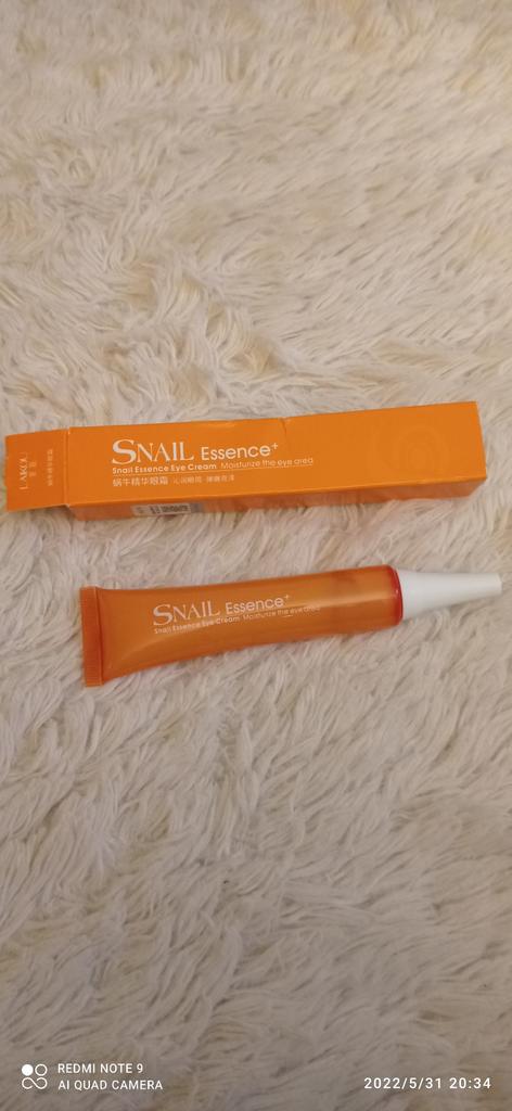 ВСЕМ ПРИВЕТ 🙋💖 🔸🔸КРЕМ ЭССЕНЦИЯ ДЛЯ ГЛАЗ🔸🔸 С ЭКСТРАКТОМ МУЦИНА УЛИТКИ 🐌 Чистый вес: 30г. Косметика с муцином - экстрактом из улиточой слизи - сейчас набирает бешенную популярность. Улиточная слизь состоит из воды и муцина - сложного белка (гликопротеина), обладающего уникальными свойствами и выполняющего важнейшие биологические функции. Фильтрат улиточной слизи также содержит аллантоин, коллаген, эластин, витамины и гликолевую кислоту (ее концентрация в слизи зависит от времени года и питательного рациона улиток). Приходит крем в коробочке запаянной в слюду. Стоит срок годности до 06.06.2024г. Крем лёгкий, полупрозрачный, С приятным ненавязчивым ароматом. Крема с муцином улитки очень уважаю🤗 Спасибо большое продавцу и JOOM 🥰 РЕКОМЕНДУЮ! Всем добра и отличных покупок 💐💞