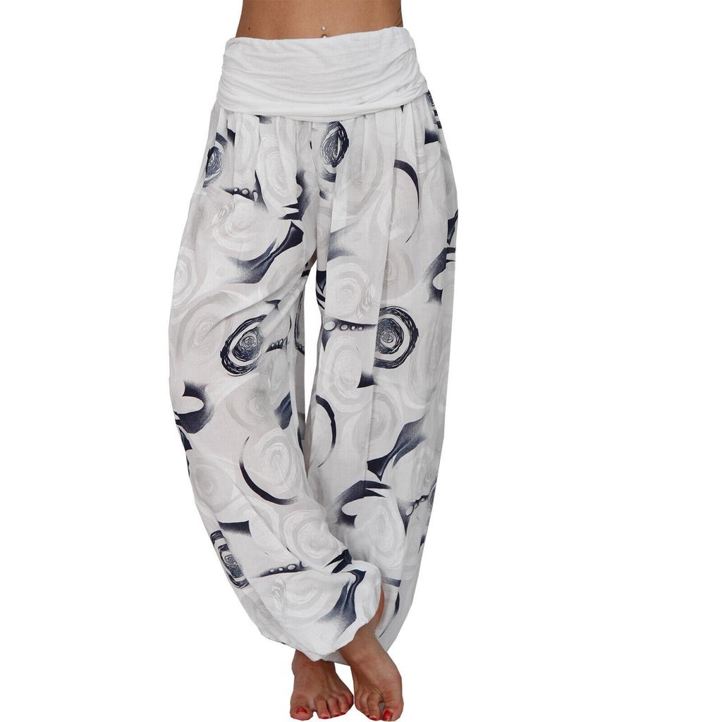 Женские повседневные длинные брюки с эластичной резинкой на талии и принтом больших размеров, прямые свободные длинные брюки Haren