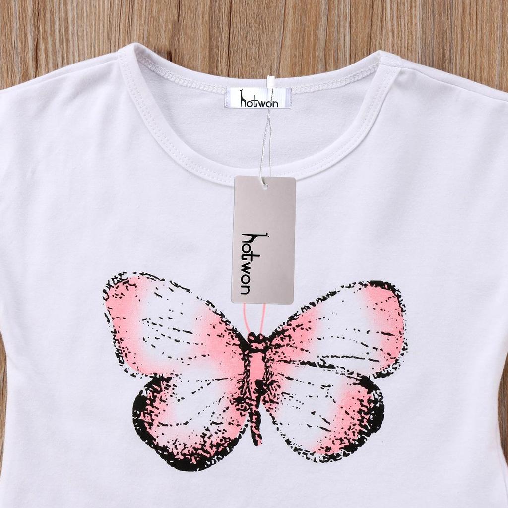 Летние наряды для малышей из 2 предметов, футболка с круглым вырезом и короткими рукавами с принтом бабочек + юбка с полным принтом, костюм для маленьких девочек