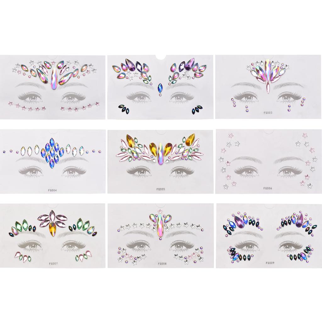 9 комплектов DIY наклейки для лица драгоценные камни русалка лицо драгоценности наклеить на кристалл горный хрусталь фестиваль лицо