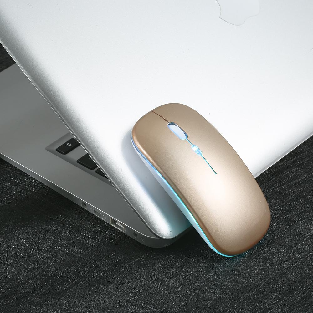 Беспроводная тонкая мышь 2,4G с меньшим уровнем шума, 3 регулируемых разрешения, 7 цветов, дышащая подсветка, перезаряжаемая мышь для