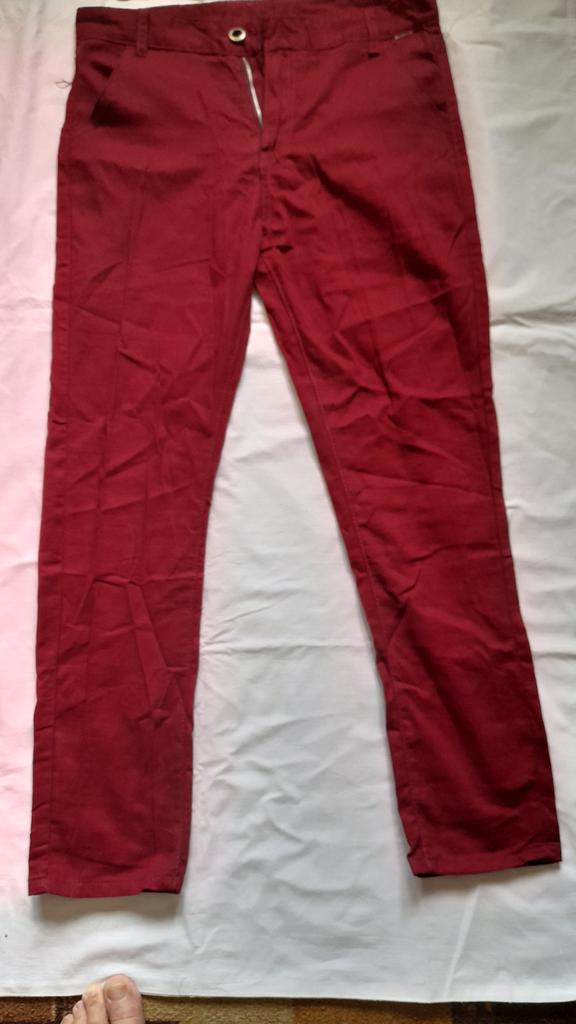 Поподробнее расскажу об этих брючках. Джинсы мужские, но покупала их для себя. Приобрела размер 38. Размер подошел, параметры, заявленные продавцом - в бедрах достаточно точные 110см , в талии чуть меньше,чем заявлено: вместо 97см - 87см. Я надеюсь к лету немного всхуднуть, чтобы талия стала меньше на пару см... Мечты... 🤣Возможно, что немного ткань растянется, а пока чуток туговато . Ткань брюк точно такого цвета, как представлено на рекламном фото- красное вино, не ярко красный цвет, как выглядит на моем фото. Но ткань совсем не джинса, достаточно тоненькая, и грубоватая, чуть потолще ситца, видимо х/б сукно. Для лета подойдет, будет не жарко. На мои параметры 106-88-109 джинсы сели неплохо. Но ткань совершенно не тянется, по талии они мне просто впритык. По бедрам- тоже. Это надо учитывать. Если параметры больше моих - лучше не приобретать, не рисковать. У кого бедра больше, чем 109-110 - не советую приобретать . Сшиты джинсы хорошо, хотя кое где ниточки торчат, повторюсь, ткань тонкая, летняя. Сзади брюк - два кармана накладных, с вышивкой- строчкой. В длину- подойдут на более высоких женщин и высоких мужчин. У меня рост 158, пришлось обрезать см 12... После нескольких примерок ткань на поясе растянулась и теперь более, чем свободна😉... Так что с талией до 90 см можно смело приобретать...