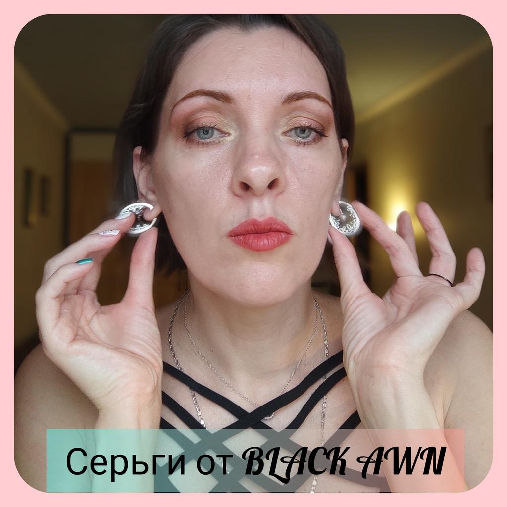 💖Серьги от полюбившегося брэнда Black Awn💖 💖Они необычные💞, внутри ажурная вставка, снаружи передняя часть серьги украшена мелкими чёрными камушками👍Хорошая застёжка, защелкивается крепко, но она необычная, впервые сталкиваюсь с такой, сколько прослужит, неизвестно! 💖Серьги симпатичные, очень даже, но.... мне не запали 😍😉!!!! А это потому, что я люблю более крупную бижутерию💓и не могу сказать, что они мелкие, нет, не мелкие!!! Но это ужж чисто моё 😉☝️💞 💓По итогу ☝️я всё же порекомендую эти серьги к покупке! Для разнообразия и ежедневной носки они, достаточно, хороши! Качество отличное 👍, ушки не болят и лёгкие! Просто я уже избаловалась🤩😏🙌и мне что-то такое этакое😉подавай!!!!!