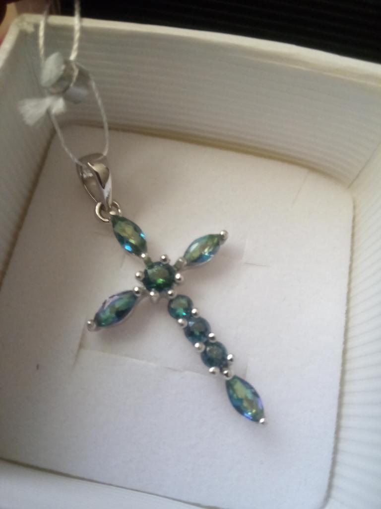 Серебряный крестик с мистик топазом 0.37ct (2085089)