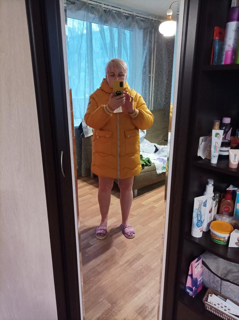 Куртку заказала XXXL. На мой 56 размер ОГ 116, ОБ 115 села как раз, но кофту тёплую уже не надеть, но и не в обтяг. Цвет жёлтый, но не сильно яркий. Что не понравилось: сзади понизу куртка как будто сборит или пошита как то не ровно и выемка такая. Карманы спереди большие пришиты очень высоко и руки неудобно туда засовывать. Внутренних карманов нет, что тоже неудобно. На левом рукаве пришит маленький карманчик на молнии непонятно для чего и что туда влезет. Ну и нитки торчали понизу, что в общем то не критично. Итог:я не в восторге.