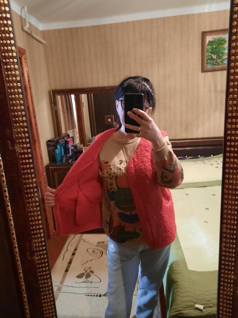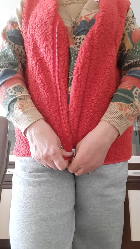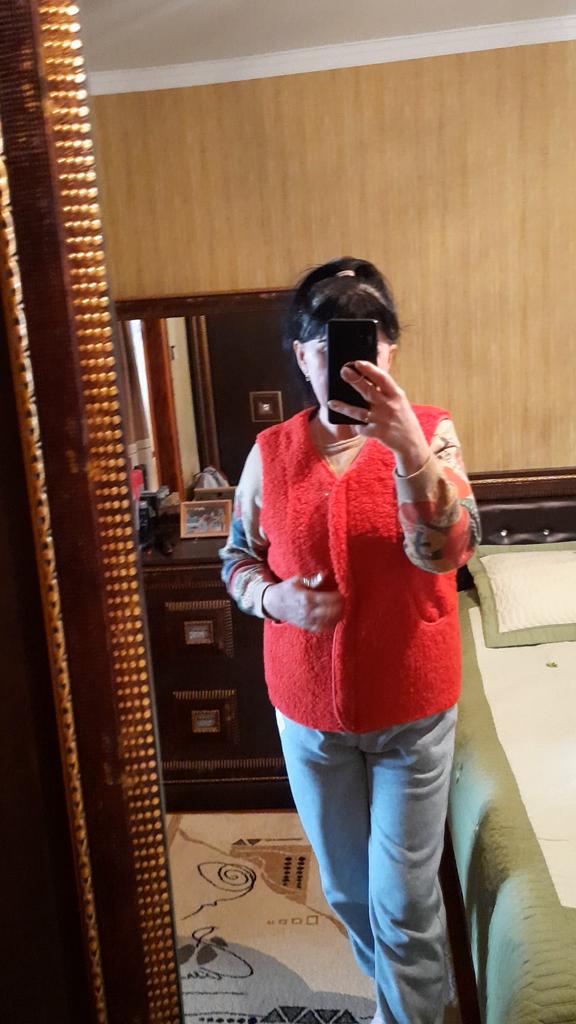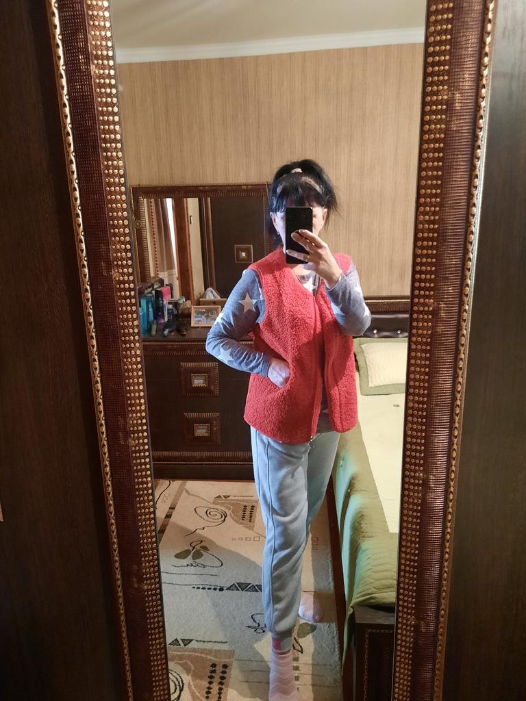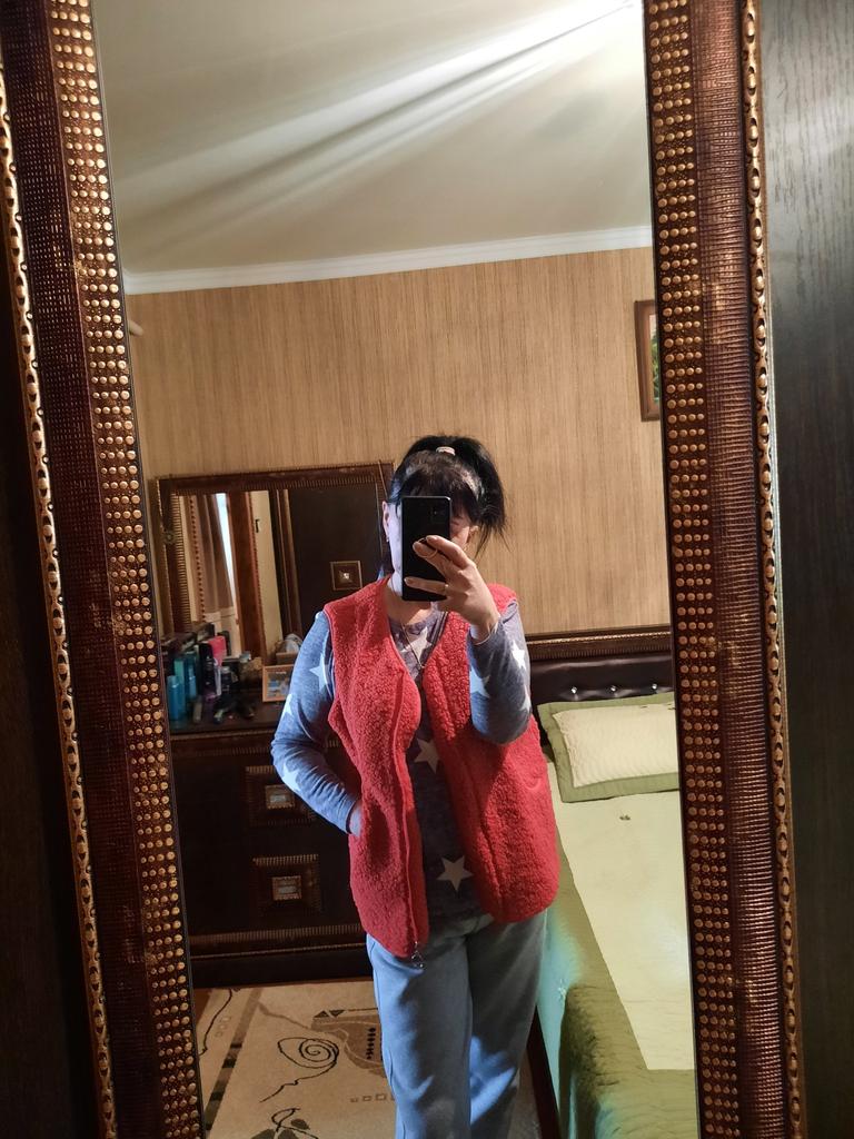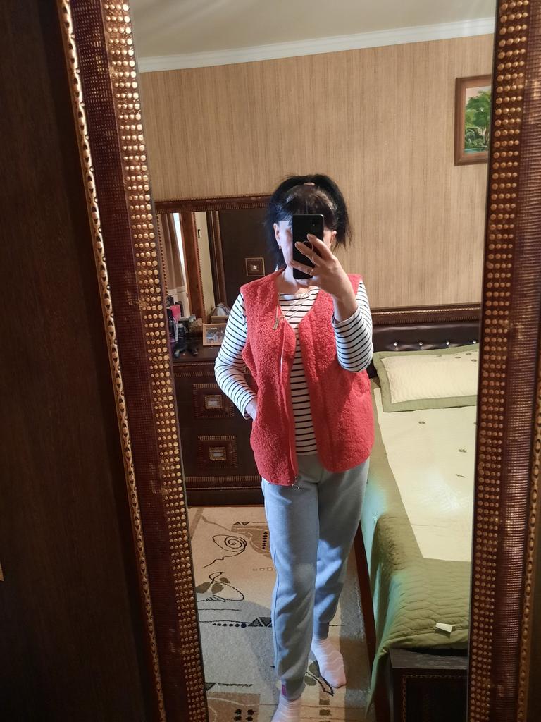 Жилетка превзошла все мои ожидания. Сшита великолепно, всё аккуратно, нигде ни ниточки не торчит. Материал оооочень приятный, на фото видно, что это не просто гладкий флис, а меховушка. Изнанка гладкая, ткань с изнанки похожа на искусственную замшу. Она ооочень удобная и тёплая. Надеваю её в холодрыгу под пуховик, спине тепло, гуляю в -30 всё отлично, для этого и надо было, ибо, пуховики нынче сильный мороз не держат. Размер 4xl я взяла на 52-54, потому, что на одежду же надевается, а не на тело. Всё отлично подошло. Длинна отличная, она не длинная, но и не короткая. Рекомендую к покупке. Продавцу спасибо. Отправлено было быстро, доставка стандартная со стороны Китая, но почта России.... С 24 декабря посылка лежала в Екатеринбурге и получила я посылку 12 января... Пешком наверное шли почтальоны... Обычно доставка с еката до Калужской обл. занимает 4 дня.