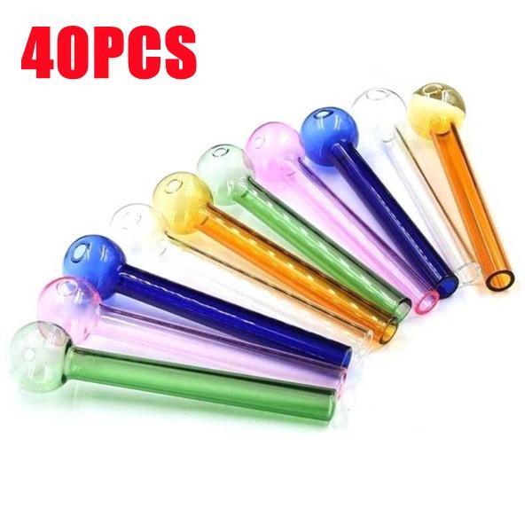 Стеклянная трубка Pyrex, стеклянная трубка ручной работы для масляной горелки, мини-курительные трубки, симпатичные цветные толстые стеклянные трубки 10/40 шт.