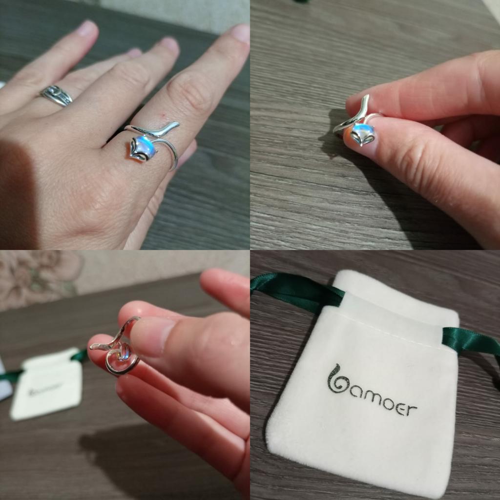 ВСЕМ ПРИВЕТ 🙋💖 КОЛЬЦО 🔸 BAMOER 🔸 Известного бренда своим качеством👍 Голова в форме лисы🦊 Другая часть кольца - хвост лисы😁 Нежное, изящное колечко из стерлингового серебра 925 пробы. Изготовлено без никеля, без свинца, без кадмия! Гипоаллергенно 👍 Главный камень: лунный камень. Вес: 1.8г. Сияет с переливами очень красиво😍 Кольцо регулируется по размеру. Я немного сжала, мой размер 16,5-17 на средний палец. В подарок продавец положил белый бархатный мешочек с логотипом бренда 🤗 Спасибо большое продавцу и JOOM 🥰 РЕКОМЕНДУЮ! Всем добра и отличных покупок 💐💞