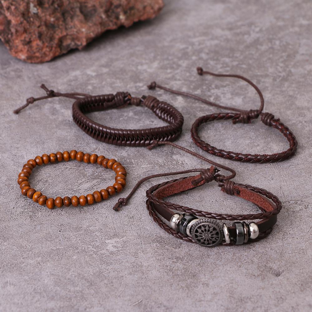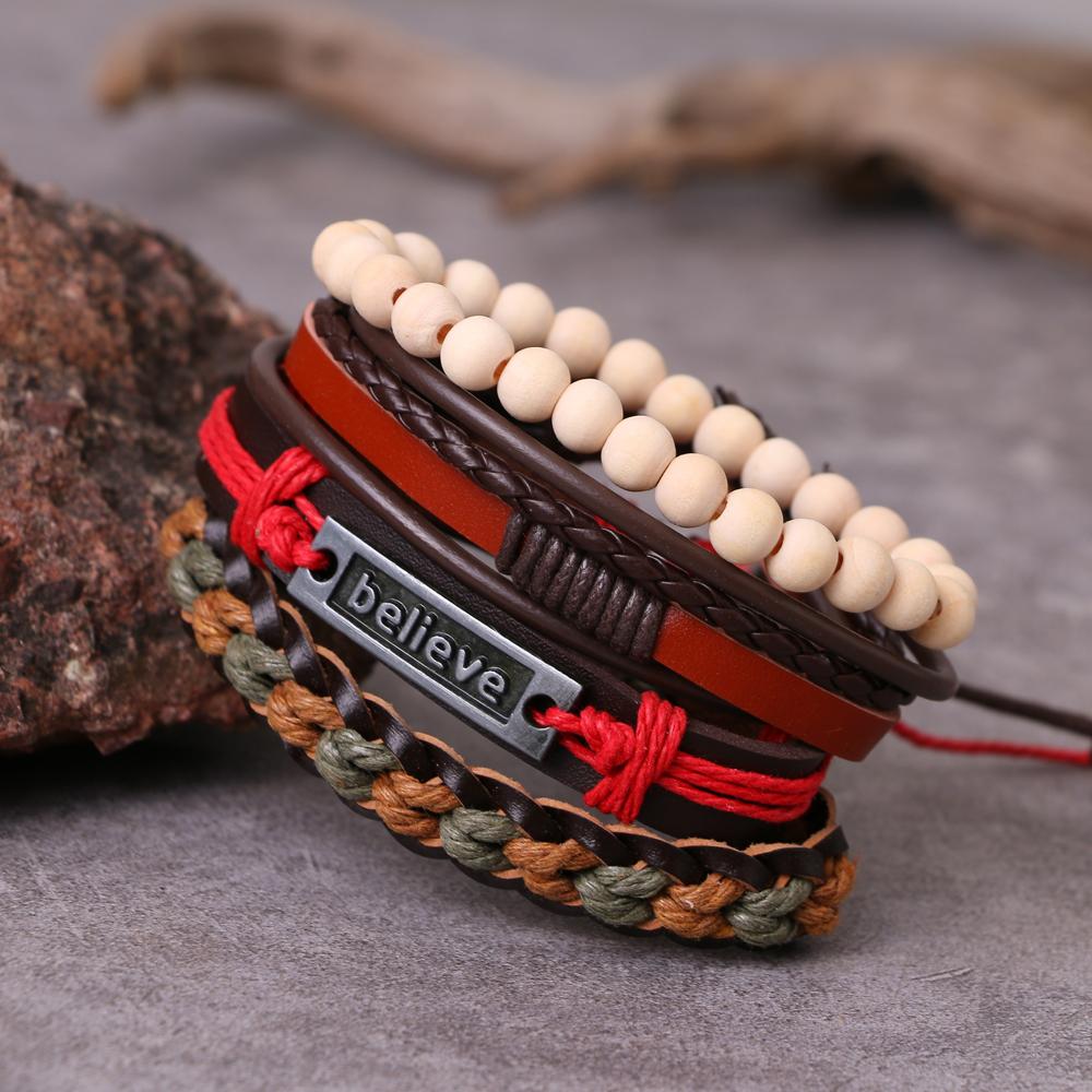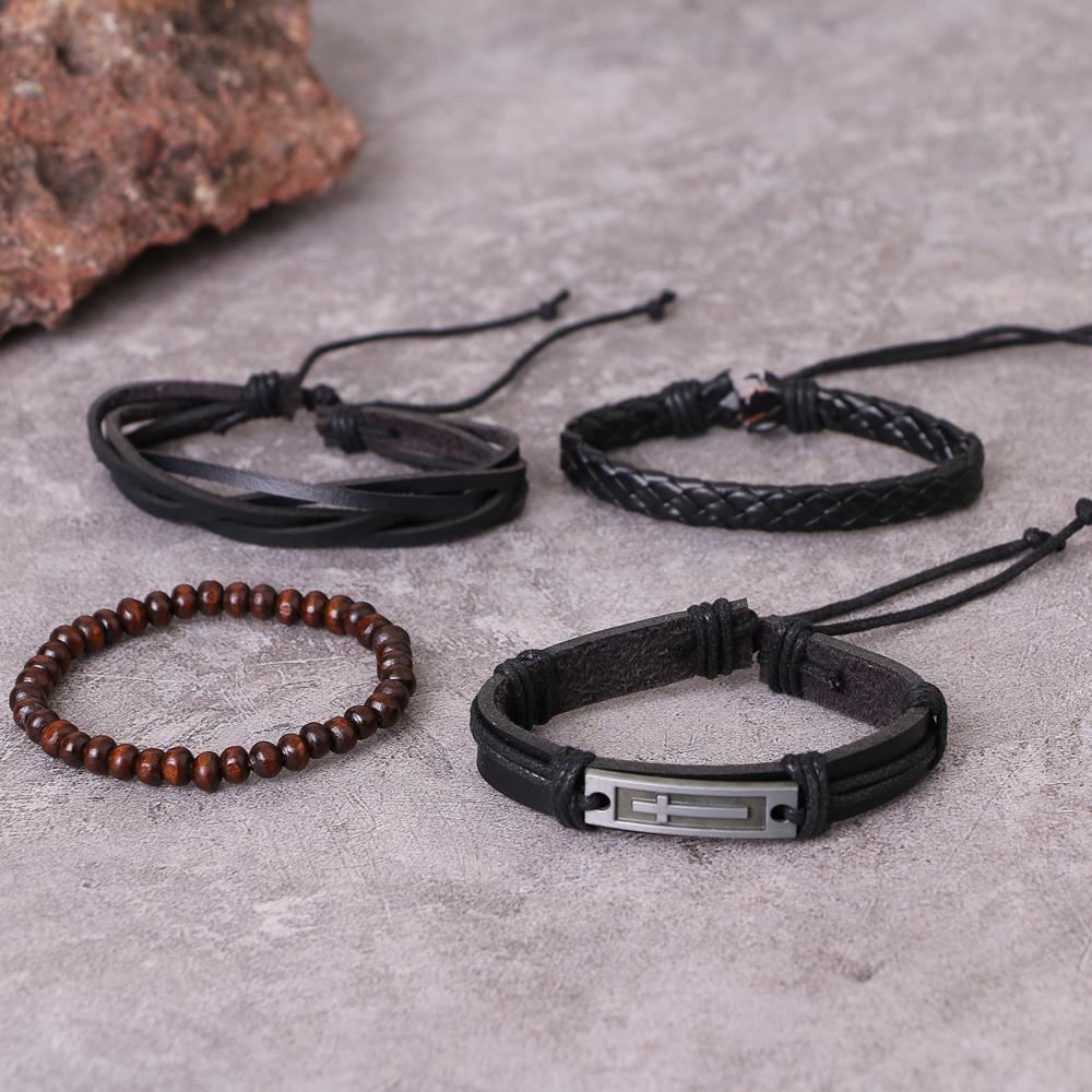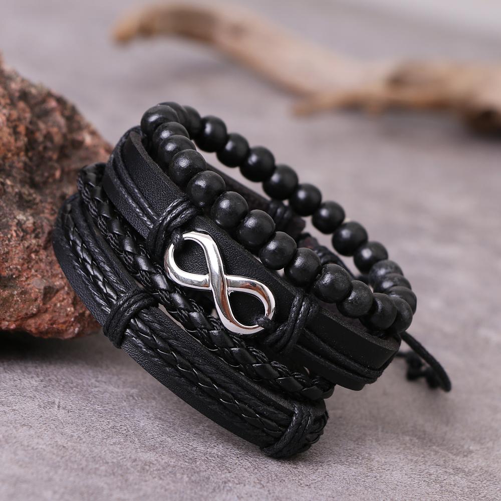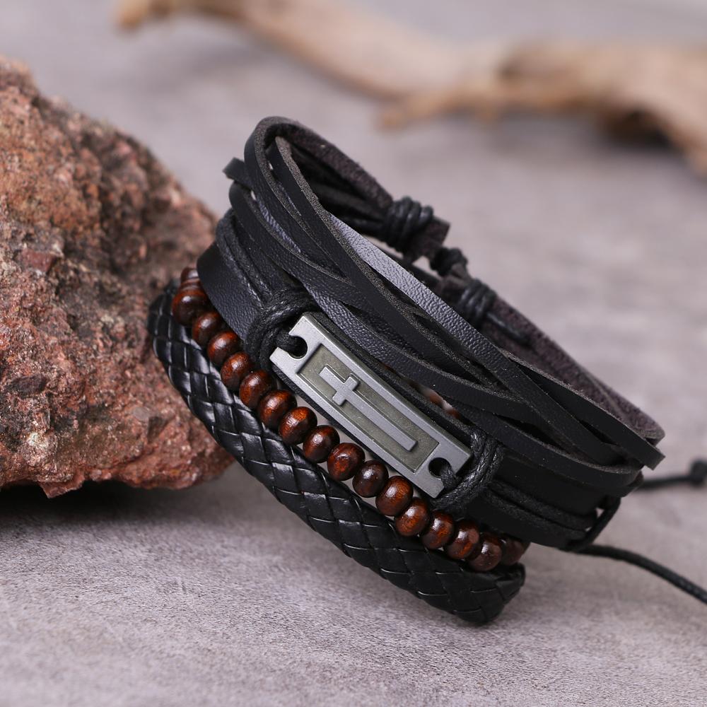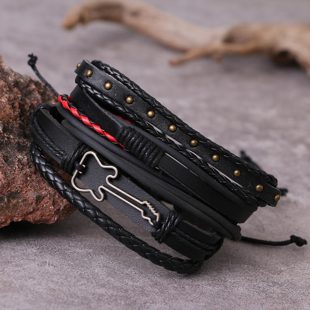 Черный мужской многослойный плетеный кожаный браслет в стиле ретро-панк, модный браслет