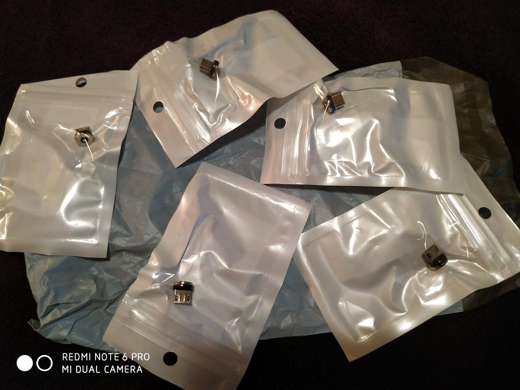 Комплект из пяти магнитных адаптеров для микро юсби. Доставка до Москвы достаточно долгая - 43 дня. По России отслеживались полностью. Выслали вместе с другими товарами. Упаковано в общий пластиковый почтовый пакет, в индивидуальный почтовый пупырчатый пластиковый пакет и в зиппакеты. Качество визуально соответствует описанию. Сделано вроде не плохо. Внешний вид и цвет полностью соответствует заказу. Размеры полностью соответствуют заказу. Количество соответствует описанию. Заказом в целом доволен. Товар и продавца рекомендую.