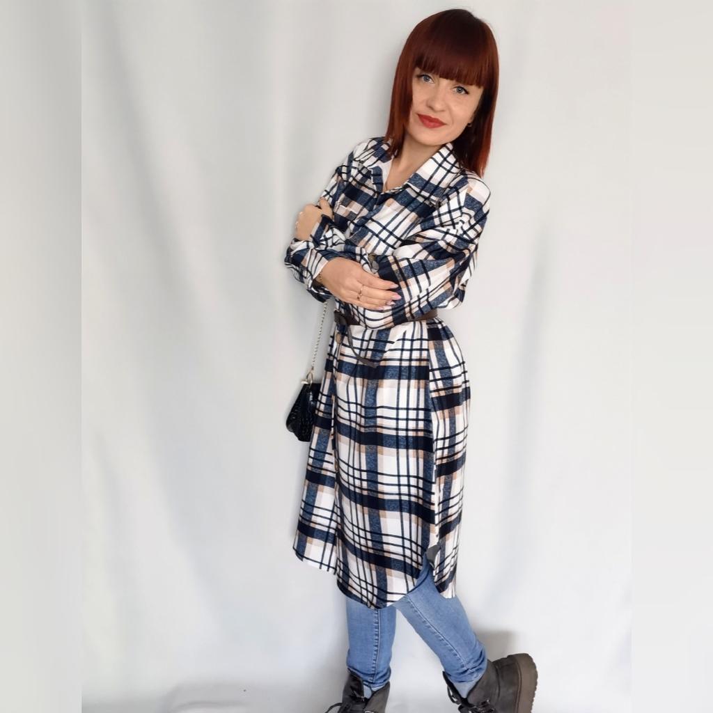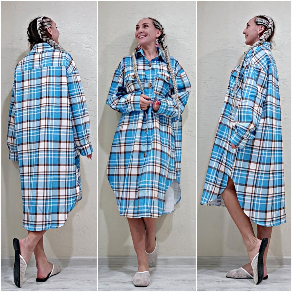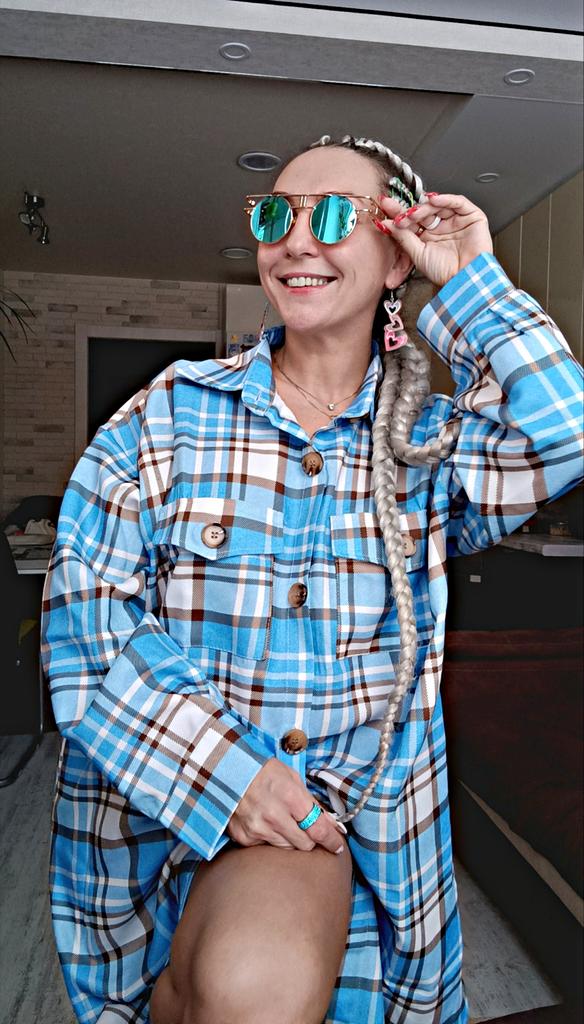 Тёплая длинная рубашка в клетку от Rugod✅ Видеообзор 🎥 Смотрите, какую новиночку себе приобрела! Это восторг! Рубашка потрясающая! Стильная, мягкая, тёплая и подойдёт под большое количество образов, а главное, под джинсы. 😂 Можно носить, как одну, с ремешком, например, застегнув практически все пуговицы, так и в растегнутом варианте, пододев под низ топ, футболку или вололазку. По обуви вообще ограничений нет, подойдёт почти все! 😎 Качество фабричное, придраться не к чему, если только к тому, что полосы клетки немного с синева, а не коричневого оттенка, но это картины не портит. Хитовый стиль оверсайз, удлинённый вариант. Стильная альтернатива платью-рубашке. Застегивается на большие пластмассовые пуговицы по всей длине. На манжетах рукавов также присутствуют пуговицы. Воротник - стойка с подворотом. Карманы есть, два больших накладных на груди. Оба функционируют. Материал - хлопок и полиэстер. Ткань плотная, мягкая, тёплая. На свой рост 161 см,плечи 39 см,ОГ 85 см, ОТ 65 см, ОБ 93 см взяла размер S и не прогадала. Села идеально, свободно, как и хотела, поэтому смело можете брать свой размер, исходя из таблицы размеров продавца. 😉 Доставка до Алтайского края месяц живым треком. Приходит с фирменной этикеткой, но без ярлыков, к сожалению. Мне ооочень понравилась! Рубашка обалденная! А кто хочет более яркий вариант, то у продавца есть такая же в голубом, розовом и зелёном цвете! 🤩
