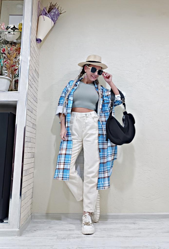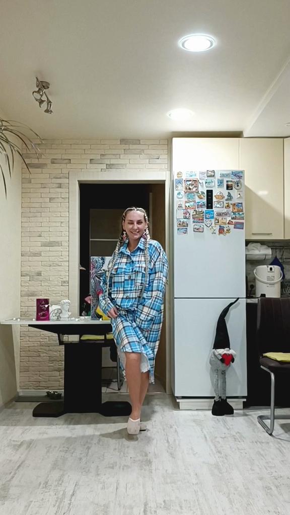 Длинная рубашка ⬜🟫🟦 Всем солнечный приветик 👋😉 Классный товар на весну/лето/осень 🔥 У меня уже есть такая же рубашка, в этом же размере, но в розовом цвете 💕 Люблю её нежно 🥰 Заказала и в голубом цвете 🩵 И решила померить на мамуле, чтобы показать Вам, сядет ли на 54 размер...и всё нет теперь у меня рубашки в голубую клетку 😅 Да, и ладно, на мамуле она реально села очень хорошо: молодит, стройнит, освежает 🥰 Так что смело рекомендую эту рубашку на вкусные параметры 😍 А так же данная рубашка сядет и на высокий рост. Заказала размер 2XL. На мне села очень-очень свободно. На мамуле тоже сидит свободно! Мои параметры: 🎗 рост 160см 🎗 вес 57кг 🎗 длина плеч 40см 🎗 объём груди 93см (75D) 🎗 объём талии 65см 🎗 объём бёдер 94см. Мамулины параметры: 🎗рост 157см 🎗вес 78кг 🎗длина плеч 42см 🎗объём груди 113см 🎗объём талии 98см 🎗объём бёдер 113см. Качество: ⬜ ткань синтетика, но приятная к телу 🟫 ткань плотная 🟦 не тянется ⬜ не светит 🟫 в некоторых местах клетка не совпадает 🟦 цвет яркий ⬜ воротник как у классической рубашки 🟫 застёгивается на крупные пуговицы в коричнево-бежевом цвете 🟦 пуговицы от самого верха и почти до самого низа ⬜ по бокам есть вырезы 🟫 на груди два глубоких кармана, которые закрываются клапанами и на пуговицы 🟦 швы ровные ⬜ качество отличное. Точные замеры рубашки в размере 2XL: 📏 ОГ - 128см 📏 ОТ - 130см 📏 ОБ - 132см 📏 плечи - 57см 📏 длина рукава от воротника - 76см 📏 длина рукава от плечевого шва - 53см 📏 длина рубашки от плеча - 107,5см 📏 объём рукава у плечевого шва (пройма) - 52см 📏 объём манжеты - 26см. Мы рубашкой довольны очень-очень и будем с мамулей её рекомендовать всеми ручками 💞🤗💞 Спасибо, продавцу и Джуму 😘😘😘 Чмок-чмок-чмок, всех кто со мной на Джуме 59 тысяч раз 😘😘😘😘😘 Желаю удачных покупок 🛍😊 терпения 🤗 и весны в душе 🌈☀️🌱🦋🌼💕🐞🌳🕊 До скорого 🙌😊 Песня во втором видео: Чарли Пут "How Long" 🎶💃🎶