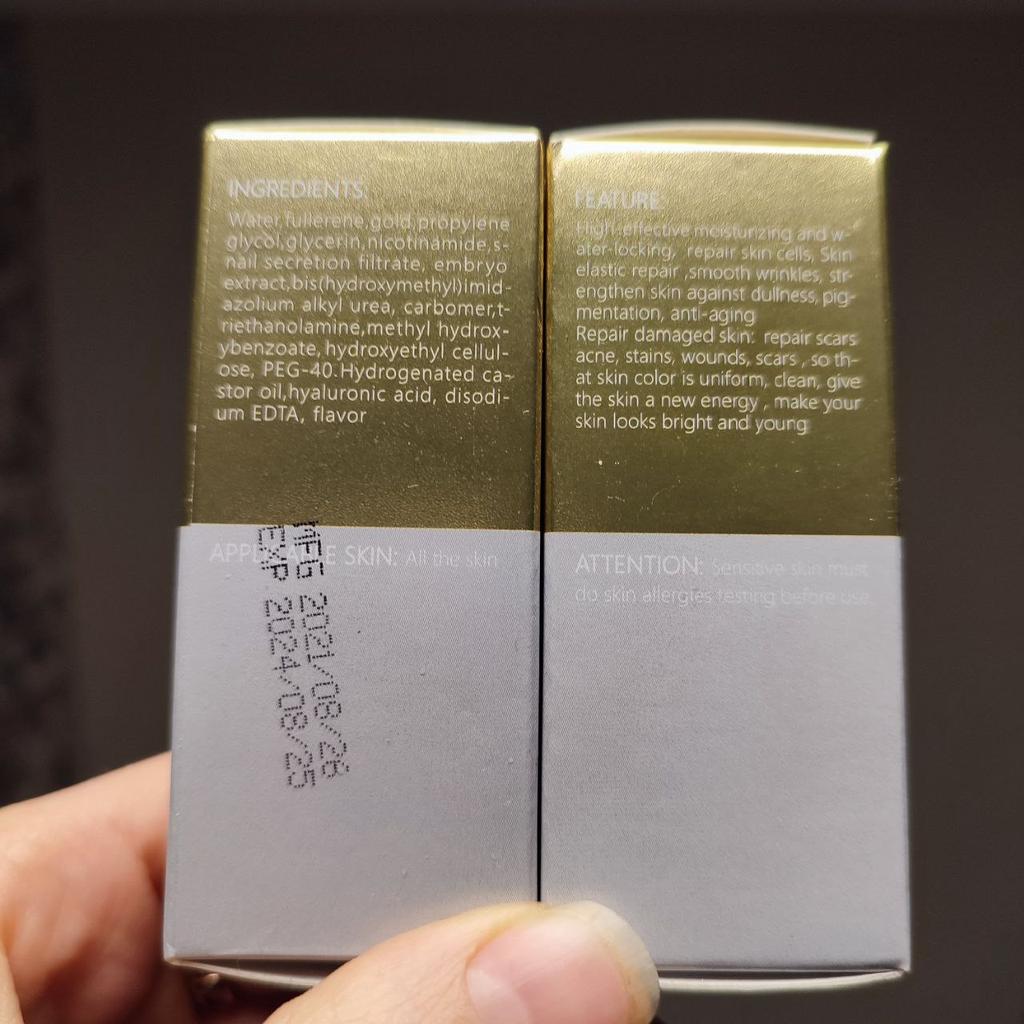 🎀СЫВОРОТКА С ЗОЛОТЫМИ ЧАСТИЦАМИ ОТ CHUMOLLE🎀 Очищение и увлажнение - это первое и почти последнее правило (косметолог подтвердит) для сохранения здоровой кожи. Антивозростная сыворотка-кристаллы Fullerene 24К Gold на основе золота, fullerene, никотинамида, snail secretion filtrate, растительного экстракта, гиалуроновой кислоты и других компонентов прекрасно подойдет любому типу кожи и высоко эффективно увлажнит и восстановит гидробаланс. После применения кожа станет глаже и эластичней, приобретёт естественное сияние. Если кожа очень обежвожена, можно повторять процедуру увлажнения в течении дня до исчезновения симптомов, но предварительно сделайте аллергопробу на запястье. Объем 1-го флакончика 25мл не маленький, поэтому можно наносить и на зону декольте, шеи👌хватит на все В составе: вода, fullerene, gold, пропилен гликоль, глицерин, никотинамид, snail secretion filtrate, растительный экстракт, касторовое масло, гиалуроновая кислота и другие компоненты. Применение: наносится легкими массажными движениями на очищенную и тонизированную кожу, желательно по массажным линиям, до полного впитывания по 4-5 капель. Покрывается увлажняющим кремом при необходимости. Или используется, как самостоятельный продукт по уходу за кожей. Применять можно утром, а кому необходимо днем и вечером. Объем: 2 флакончика по 25мл Упаковка: фирменная золотисто-серо-белая коробочка. Флакон из стеклапластика со стеклянной пипеткой дозатором, что очень удобно👌 Дата: до 08.2024 - срок хранения 3 года ✈Доставка заняла 4 недели. Шло в совместной посылке. Упаковано было в пупырчатый почтовый пакет👍 Мне сыворотка понравилась➡️Могу рекомендовать💐однозначно подойдет на подарок🎁