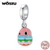 WOSTU Эмаль Веселая Волна Юбка Птица Серебряный 925 пробы Шарм Подвеска Подходит Браслет Изящные Ювелирные Изделия