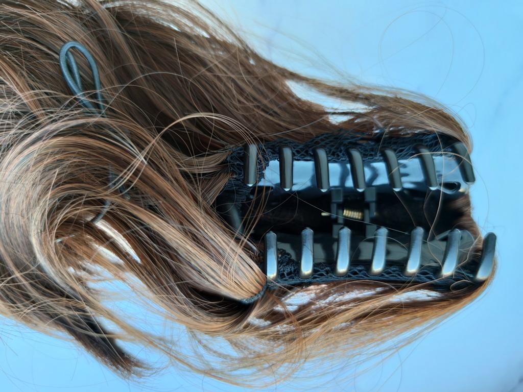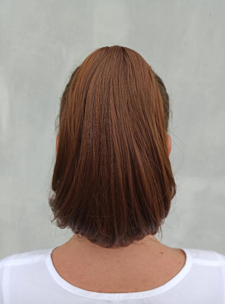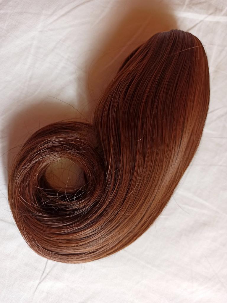 Хвостик на крабике 👱🏻♀️ Заказывала для подружки. В цвет попали отлично, он такой же как на фото продавца. Цвет 2-30. Каштановый, мелкое мелирование. Я впервые заказываю шиньон на крабике. Казалось бы должно быть быстро и удобно. Но 🙄 Может быть мы с подружкой что-то делаем не так, но сверху, визуально видно, что это шиньон. Смотрите последнее фото. Девочки, кто знает как это исправить, подскажите пожалуйста?! Надеемся, что это можно зафиксировать шпилькой, но под рукой ее пока нет. Длина в самом длинном месте 33 см, визуально он выглядит короче за счёт завитых концов. Волос жестковатый, но без кукольного блеска. Лезет больше чем положено. Рекомендовать не буду. Порадую вас промокодом на скидку 5%👇🏻 GVMWK1BQ59 И жду вас на моем Telegram-канале. Там больше промокодов 🥰 Joom with Iri или Iriskajoom 💗