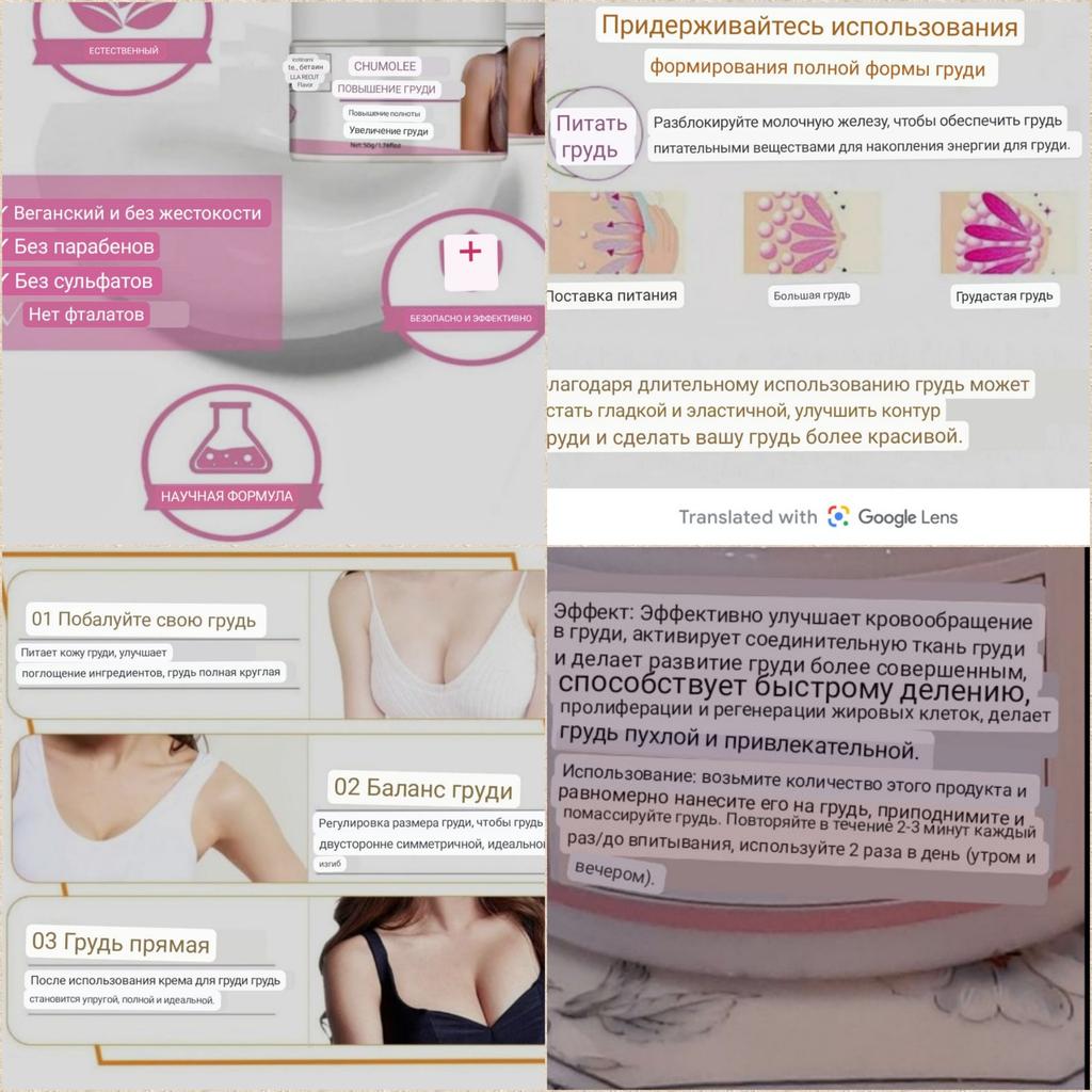 🤩 ЭФФЕКТИВНЫЙ КРЕМ ДЛЯ УЛУЧШЕНИЯ КОНТУРА ГРУДИ, И СОСТОЯНИЯ КОЖИ МОЛОЧНЫХ ЖЕЛЕЗ 👍 🙋♂️ Всем привет! Этот обзор про то, что чудес не бывает, хотя и очень хочется в них верить. Но также обзор и про крем, который всё же отрабатывает свою стоимость. Сейчас расскажу подробно. Моя супруга уже довольно давно (в течение примерно полугода) активно засматривалась на данный крем для груди, так как возрастные изменения на груди сказываются, и грудь уже не в лучшем виде, как в 20 лет. 🤷♂️ С недавних пор жена всеми силами пытается придать своей груди привлекательный вид (я уже и не говорю об изначальном). На мой взгляд, её бюст выглядит вполне себе, но у женщин свои думки насчёт своей внешности. В итоге решили заказать на пробу этот крем - уже брали средства от этого китайского бренда, в целом довольны результатами. Почему-то верилось, что средство должно быть рабочим. 🕵️♂️ Описание с официального сайта: действие крема оказывает видимый эффект липофилинга – улучшается форма груди, подтягиваются линии контура груди и декольте. При регулярном использовании крема увеличивается объём груди (до +8,4%). Всё это становится возможным благодаря комплексу экстрактов на натуральной основе, которые являются активными ингредиентами крема. ✈️ Доставка быстрая, всего 27 дней. Трек полностью отслеживался. Крем пришёл в красивой баночке, без коробки. Описание от производителя, способ применения и иная информация на английском языке - можно перевести и понять, что к чему. Срок годности указан на дне банки. Крышка самая обычная откручивающаяся, горлышко зафольгировано - это очень даже порадовало, это немаловажно. ☝️ Крем имеет очень плотную и густую консистенцию белого оттенка, неплохо разносится по коже и практически мгновенно впитывается - а это немаловажно для нежной области - чтобы лишний раз её не растягивать. Аромат чуть слышно, он какой-то сливочно-растительный. Никаких неприятных ощущений после применения не было (покалывания и ему подобных, покраснений также не было). Что по поводу результата от применения? 😊 Подтяжку по итогам трёхнедельного тестирования мы особо не заметили. Визуально грудь практически не подтянулась (при этом супруга ещё занимается упражнениями и массажем груди), хотя у неё не всё так и плохо, да и увеличения объёма не было (хотя оно мне не надо - меня устраивает её объём). Но при этом кожа стала более ровной, напитанной и очень нежной и словно бархатистой. 💯👍 В общем, крем хорошо увлажняет кожу груди, и тактильно она более упругая и приятная на ощупь благодаря этому крему. То есть положительный результат всё же есть, и нам нравится. Может, три недели - это слишком короткий срок для серьёзных улучшений? Будем продолжать использовать! Моя семья рекомендует этот крем для груди всем желающим. Покупаем выгодно вместе! Более выгодные покупки - с новым промокодом: 🔥 SUN ‼️ СКИДКА 11% 👍 Такие промокоды сгорают очень быстро. Срочно активируйте его, и покупайте по максимально низким ценам. Всем удачных покупок! 🤗