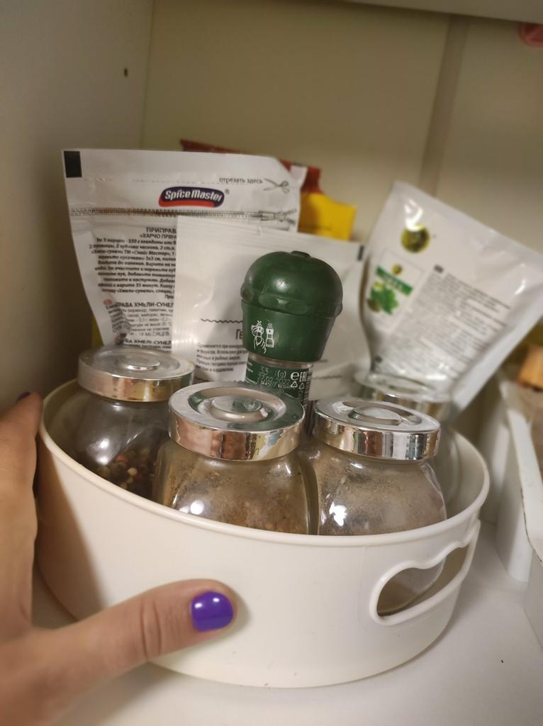 Кухонный поворотный органайзер Отличная штука! Мои специи теперь все в одном месте под рукой и их легко найти просто поворачивая органайзер 😉 Характеристикам продавца товар соответствует. Думала, что на дне колёсики, но нет...из там нет, но данная штука работает, органайзер отлично крутиться вокруг своей оси. Диаметр 23 см. Доставка в сборной посылке долгая, почти 2 месяца. Упаковал продавец посылку хорошо, органайзер дошёл целым. Для удобства и порядка на кухне рекомендую 🤗🥰❤️