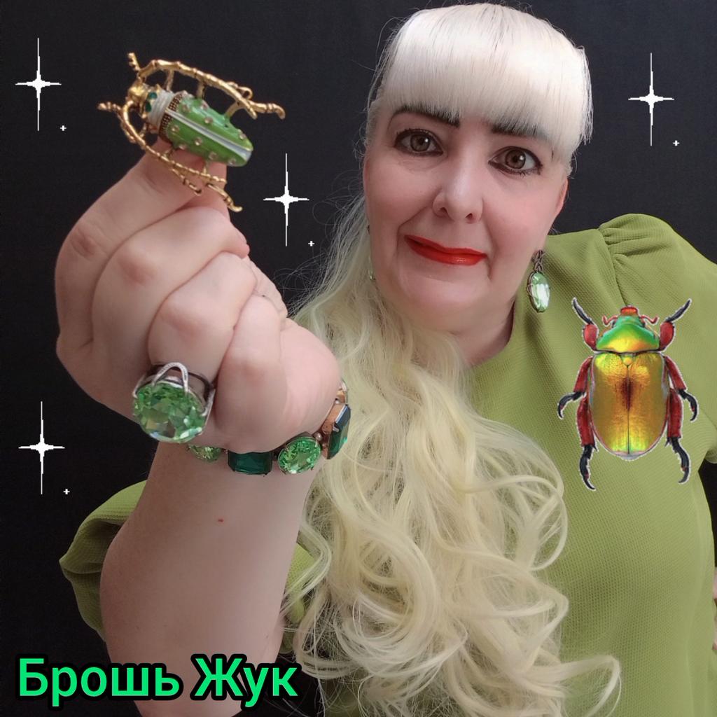 Жук просто "отпад"! Когда я его прицепила на чёрный свитер, то не было мимо проходящего человека, который бы не сделал комплимент! Интересная брошь и нынче в моде!