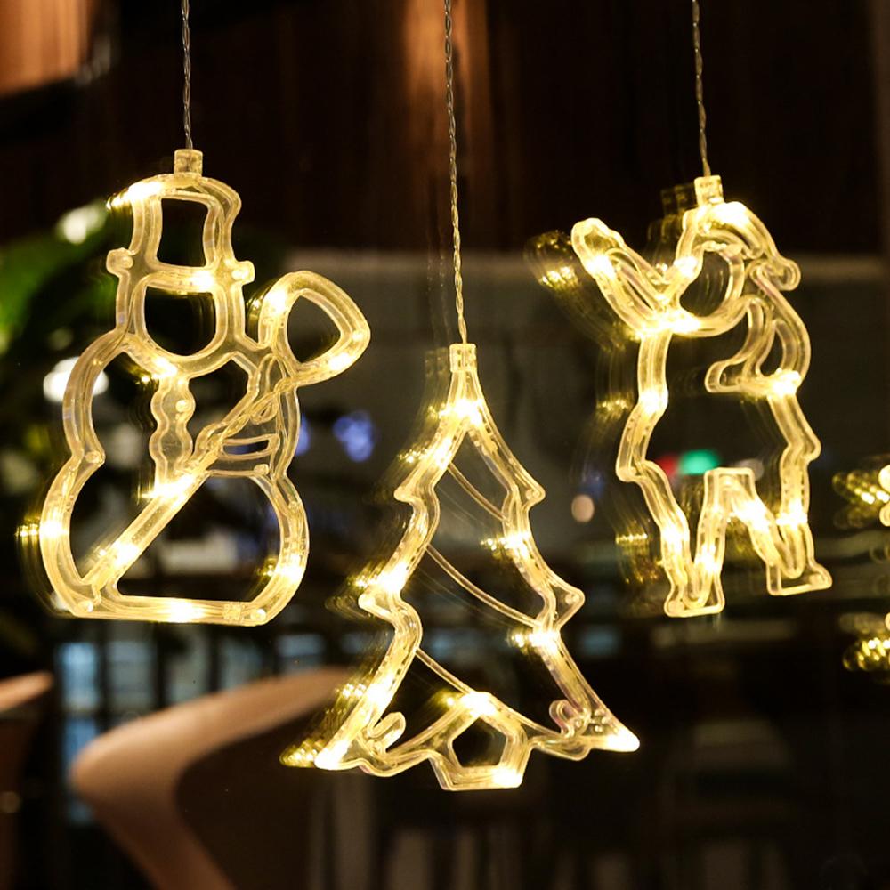 Светодиодные рождественские огни, украшение, снеговик, колокольчик, звезда, праздник, окно, звезда, свет, присоска, лампа