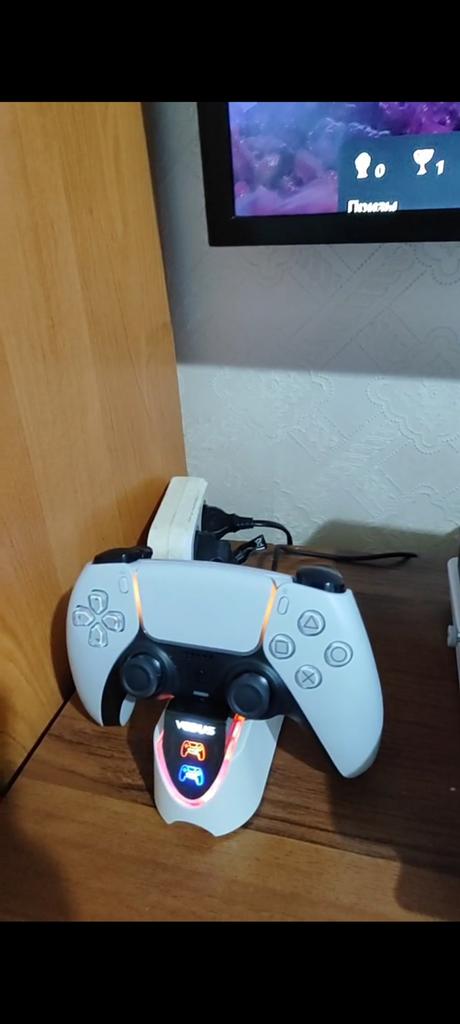 Качественная подставка-зарядка для PS5-гейпадов. Световая индикация зарядки, использование зарядных контактов вместо USB-C разъёма. Всё хорошо работает. 📨 Доставка 📨 Заказ ехал месяц и одну неделю (стандартное бесплатное отправление, Россия, Санкт-Петербург). Получал в отделении почты. 📦 Упаковка и комплектация 📦 Подставка идёт в собственной фирменной коробке. Упакована в конверт из плотной бумаги, изнутри отделанный «пупыркой». Коробка в пути помялась, но сама подставка доехала целой. В комплекте: подставка, кабель USB на USB-C длиной ~40см. 🕵 Опыт использования 🕵 Подставка сделана из качественного пластика, дизайн на уровне: рядом с PS5 смотрится органично. Рассчитана на 2 геймпада, которые устанавливаются вертикально на нижние зарядные контакты, где разъём для наушников — и через этот разъём фиксируются на специальный штырёк. Ставится джойстик легко и без усилий, со второго-третьего раза привыкаешь и ставишь не глядя. К PS5 подставка подключается через кабель USB-C, можно использовать шнур из комплекта или тот, который идёт в комплекте с самим геймпадом. На подставке работает световая индикация: синий цвет — подставка «под током», оранжевый — идёт зарядка геймпада. Подсветка ярковата: если оставить ночью включённой, неплохо освещает комнату. Для меня нюанс не стал критичным. 📑 Резюме 📑 Подставка исправно работает, недостатков, не считая слишком яркой подсветки, не обнаружил. Собрана качественно, выглядит приятно. Хорошая вещь, рекомендую. Если товар понравился, ставтье лайк и добавляйте его в избранное или корзину 👇