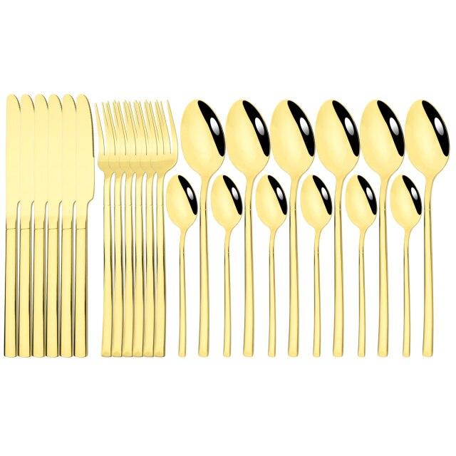 24 шт., набор столовых приборов из черного золота, столовая посуда из нержавеющей стали, ножи, вилка, ложка, обеденная посуда, вечерние кухонные столовые приборы, набор столового серебра