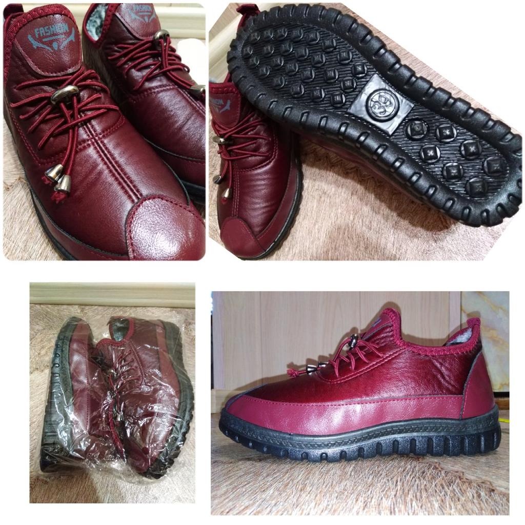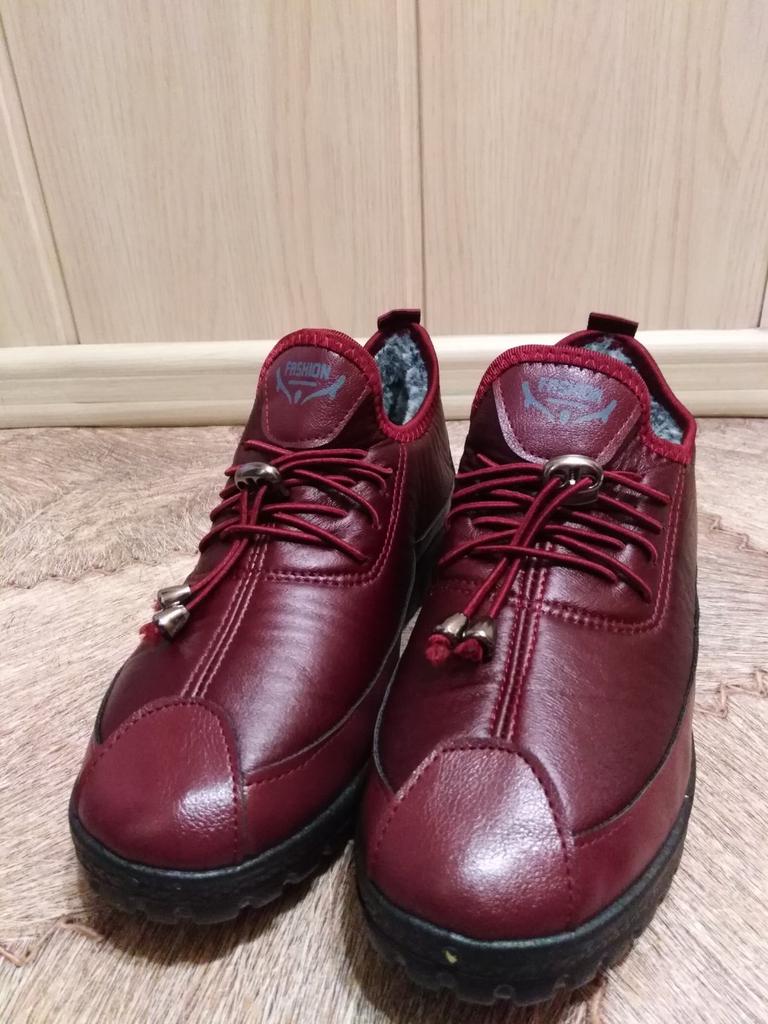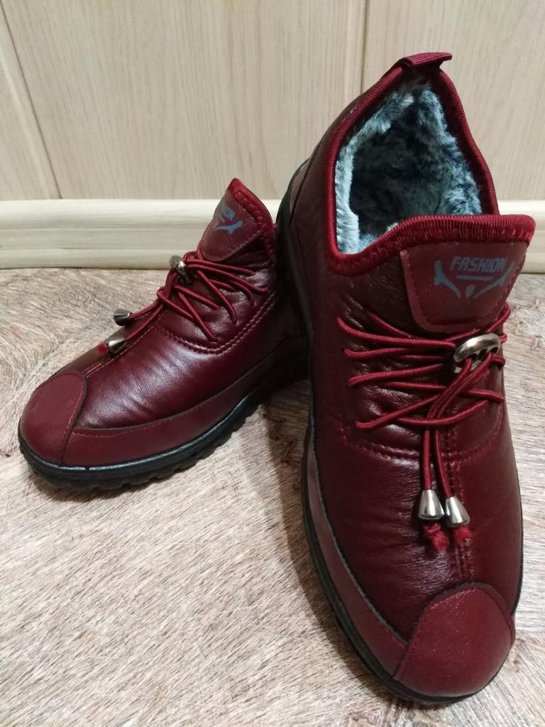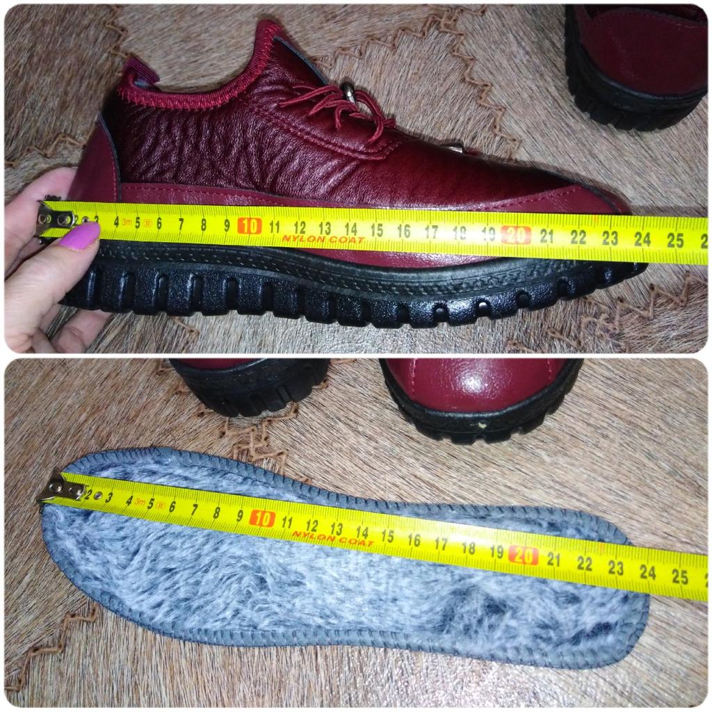 Ботиночки 👞👢👟. Это помесь: кроссовки/полусапожки/туфельки... Мягонькие во всех местах: и материал снаружи и "меховушка" внутри и подошва. 🤗. Стелька тоже из "меховушки", вынимается 👍. Пошив - без нареканий 👍. Шнурки несут собой декоративную составляющую 🎉. Материал верха - комбинированный из двух видов: по низу у подошвы - это мягкий ПУ; а верхняя часть - похожа на "плащёвку", но не шуршащую, а мягонькую. "Вход" в ботиночки, наверное, не всем подойдёт, т.к. "язычок" стационарный, застёжек/расстёжек нет. Но, с помощью обувного рожка у меня без проблем одеваются 👌. Подошва гибкая, но не хлипкая! Носовая часть ботиночек имеет загиб кверху, аж в 2 см. Что является причиной странности в ощущениях размера 🤔. Размер по стельке = ровно 24 см. Вроде, как по таблице продавца - верно. И на мою стопу, размером = 23,5 см - должно быть хорошо... Но, палец упирается! И всё дело в этом "загибе" конструкции😜, палец упирается не по длине, а в "потолок" ботиночка... Надежда на то, что материал мягкий, промнётся постепенно, давить, может перестанет 🤔 Подошва очень порадовала: протектор почти, как "бутсы" футбольные👍⚽, не скользят ботики поэтому, проверила на ходу (у нас сегодня выпал снег с заморозкой луж). И при температуре сегодня -6" в ботинках было тепло! 👌 Всем доброго здоровья и приятных покупок 🛍!
