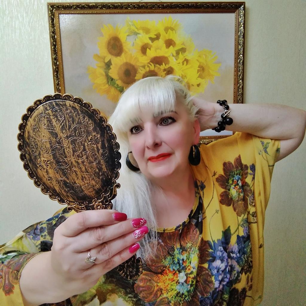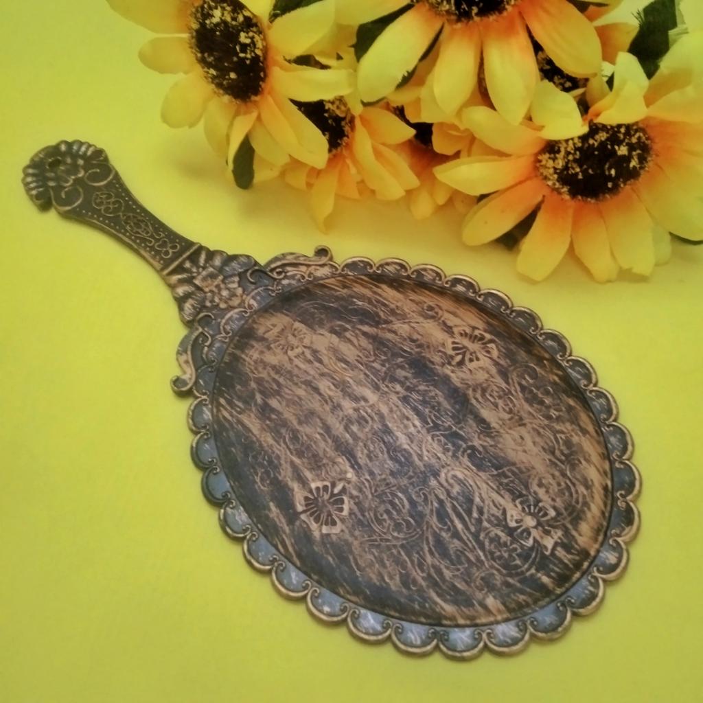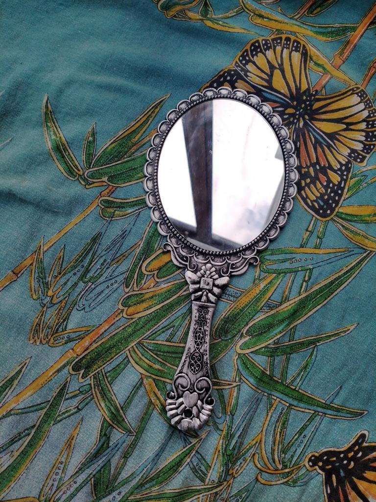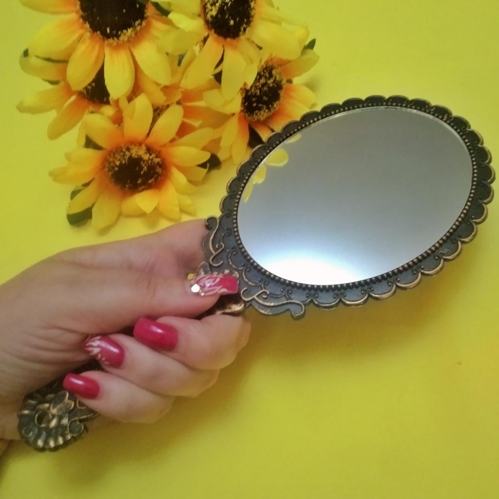 Красивое зеркало с ручкой под серебро, удобно держать в руках. Дошло без повреждений. Огромное спасибо.