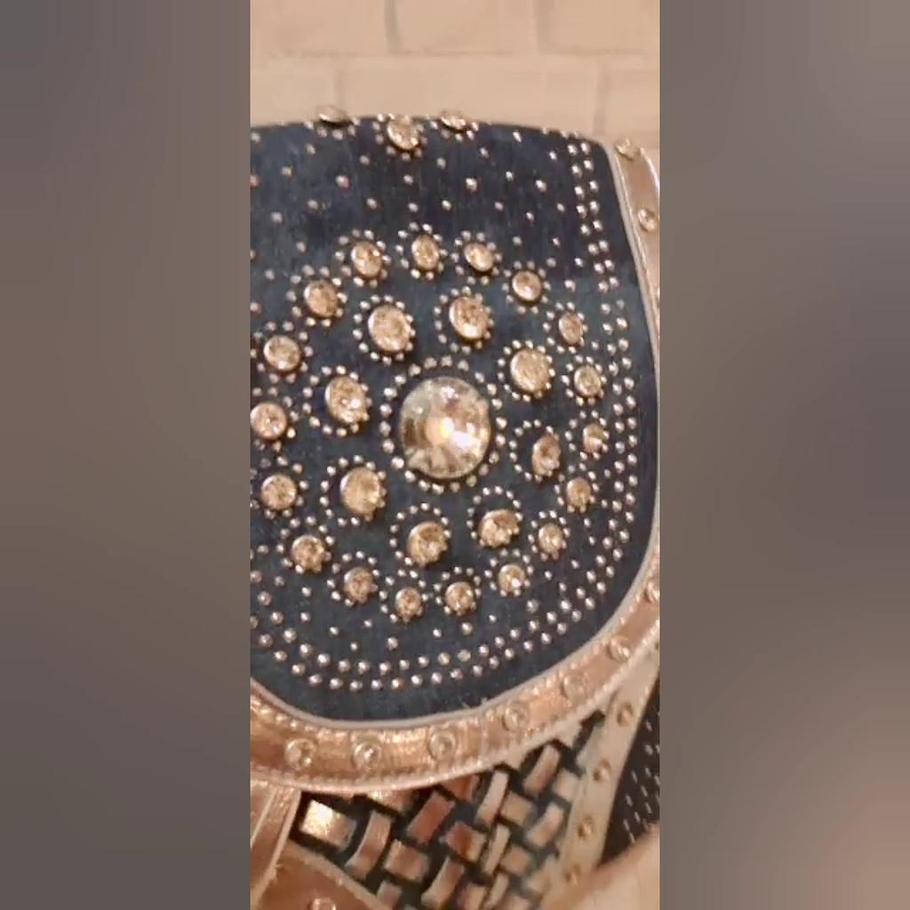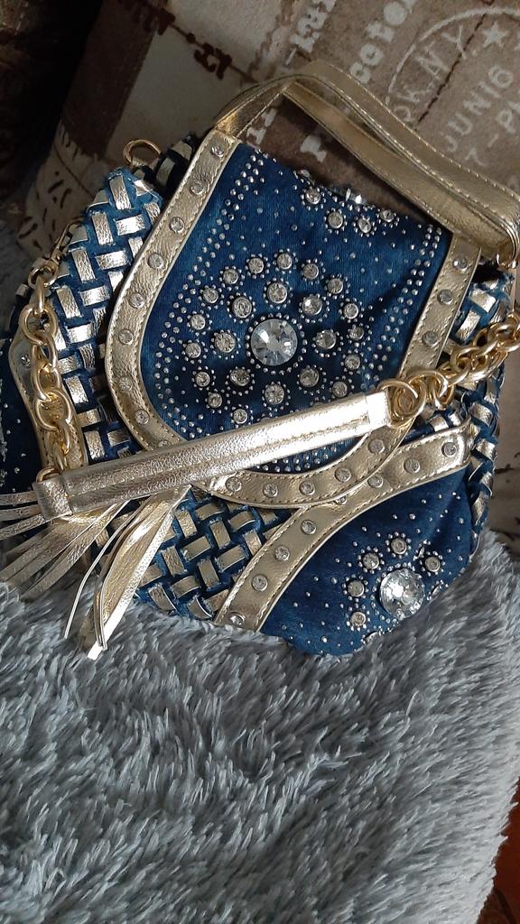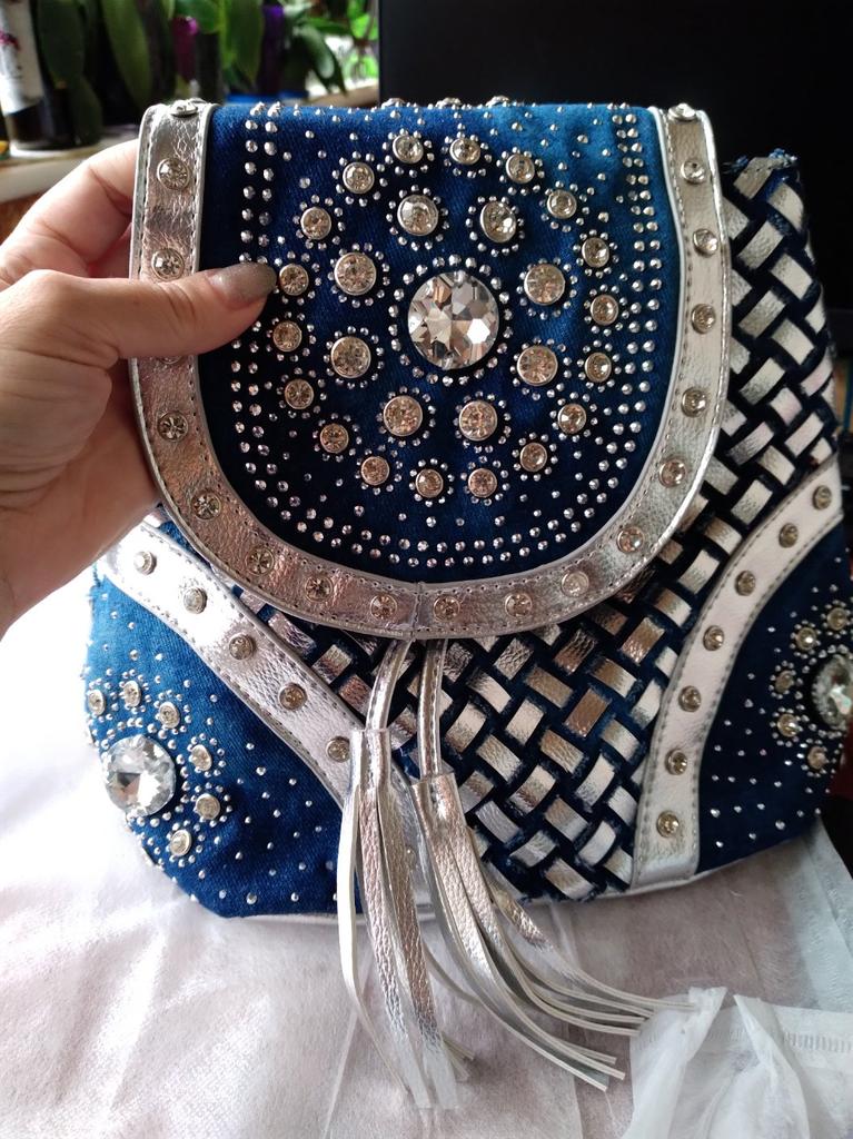Получила заказ, сумочка-рюкзак , не очень большая, но вместительная. Основной материал джинс и вставки из кожзама. Декорировано стразами и бусинами , довольно качественно всё закреплено и пришито. Носить можно как сумку за ручку или на ремешказ как рюкзак. Карабинчики крепкие. К дизайну есть вопросы, заказывала сумку серебрянного дизайна,. Весь дизайн вополнен в серебре , и вдруг, на ремешках золотого цвета фурнитура??? Сразу при заказе на фото продавца не обратила внимания. Сейчас рассмотрела и не понимаю почему нельза было внимательней подобрать цепочки для ручек и крепёжную фурнитуру гармонично по цвету. Такое сочетание серьёзно удешевляет внешниф вид изделия ещё и за такие деньги(((( Поэтому сняла одну звезду дизайнеру. Прислали только один ремешок для рукзака нет второго. Основная ручка не ровно пришита((( За доставку , спасибо, все в сохранности и в срок доставленно!