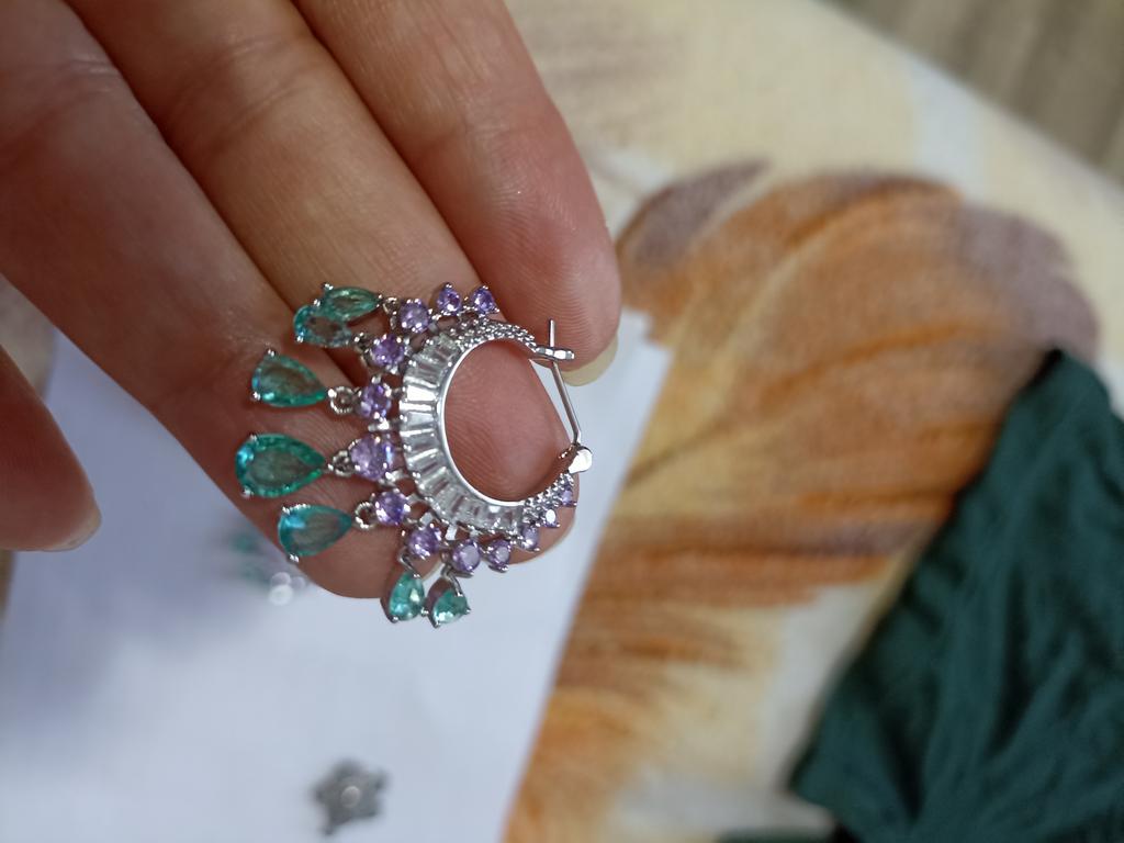Серьги красивые,но в рекламе выглядят лучше!!!Дело не а этом! Я замучелась их надевать!!!Если надевать как обычно,то камни получаются с зади!!! И их не видно! Но самое удачное это застёжки!!Они очень тоненькие а пальцы не возмеш! Хлипкие и короткие..я застегивала пол часа! Думаю очень быстро сломаются!!!Не советую!