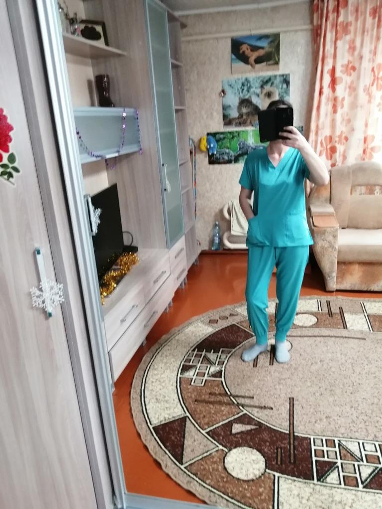 Медицинский костюм Ткань тонкая и лёгкая, приятная к телу, подойдёт для лета. Мнется достаточно сильно, гладить лучше на минимальной температуре. Тянется совсем немного. На свой привычный размер М заказала L, боялась что будет короткий (рост 178). Верх подошёл идеально (соответственно, на L маломерит), штаны наоборот очень большие по ширине, с очень высокой посадкой, но короткие. Как дойдут руки, перешью, после этого буду носить. В целом, неплохой костюмчик за такую цену, но рекомендую к покупке только тем, у кого есть возможность и желание его переделывать.