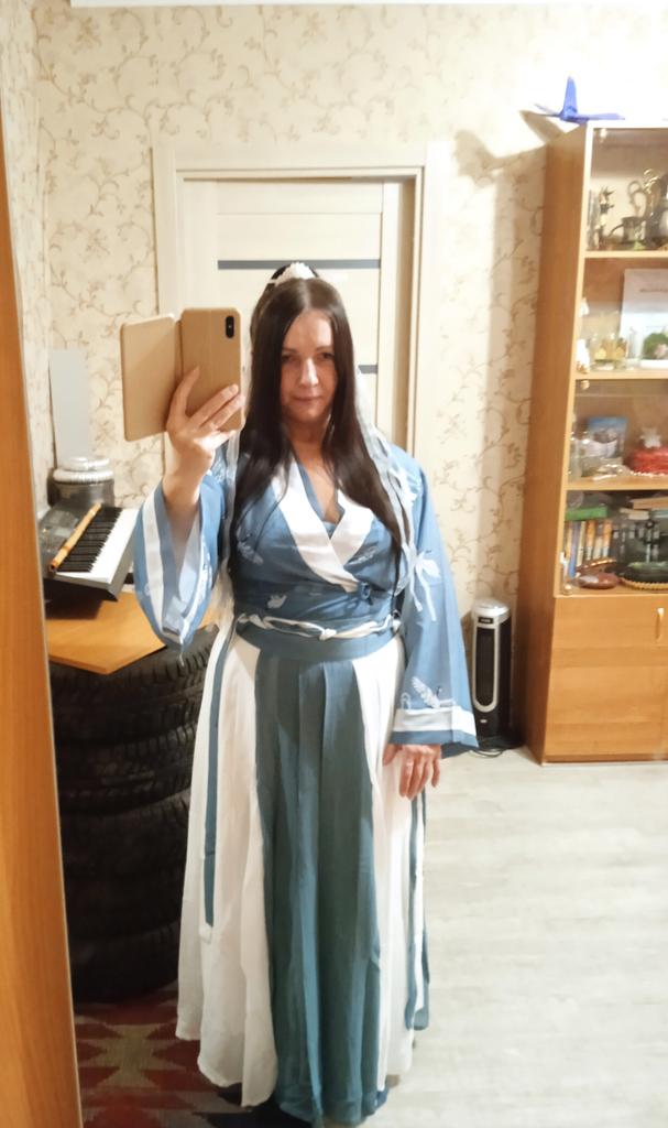 Прекрасный костюм для фотосессий и косплейных вечеринок. Из недостатков - кое-где торчат нитки, учитывая, что материал тонкий, это нормально. Если бы материал был плотнее, эффекта "воздушности" не было бы. Спасибо продавцу и Джум!