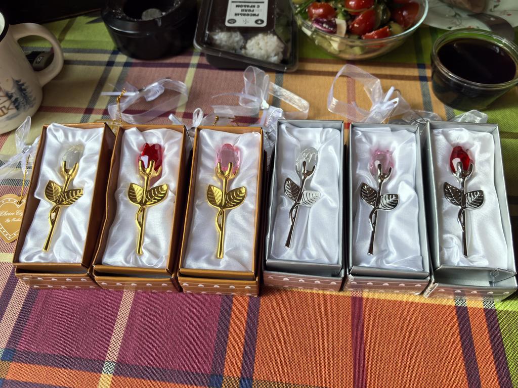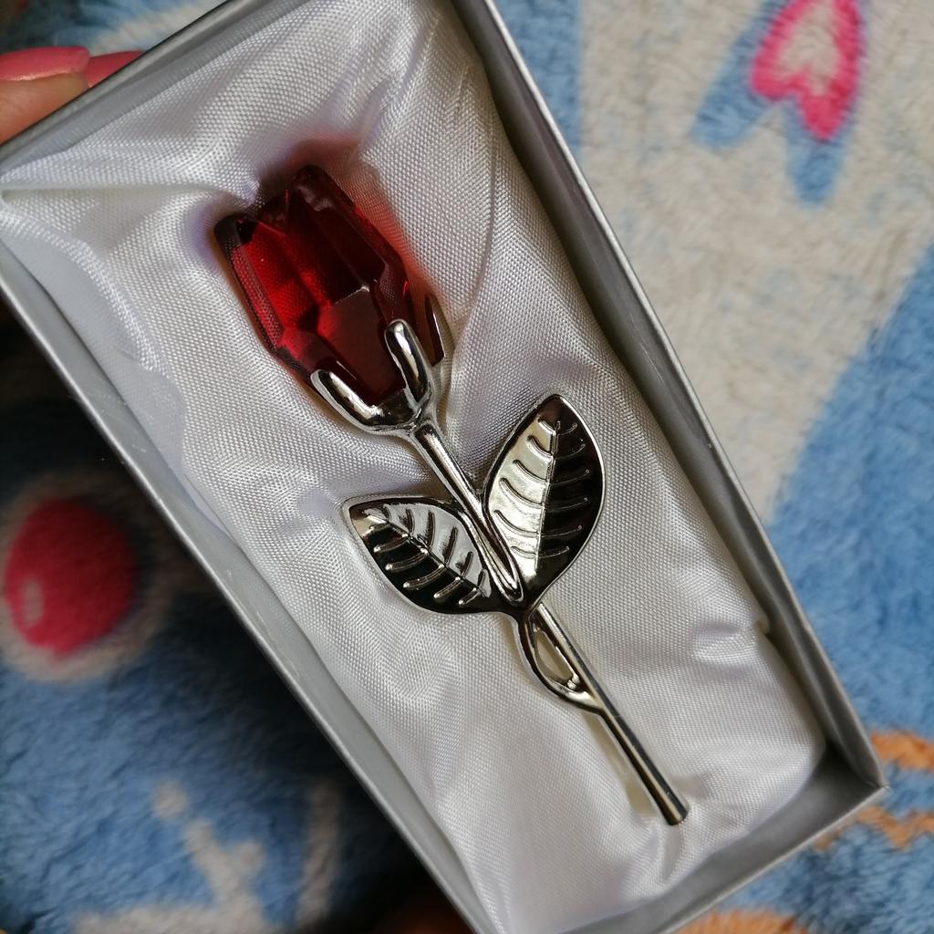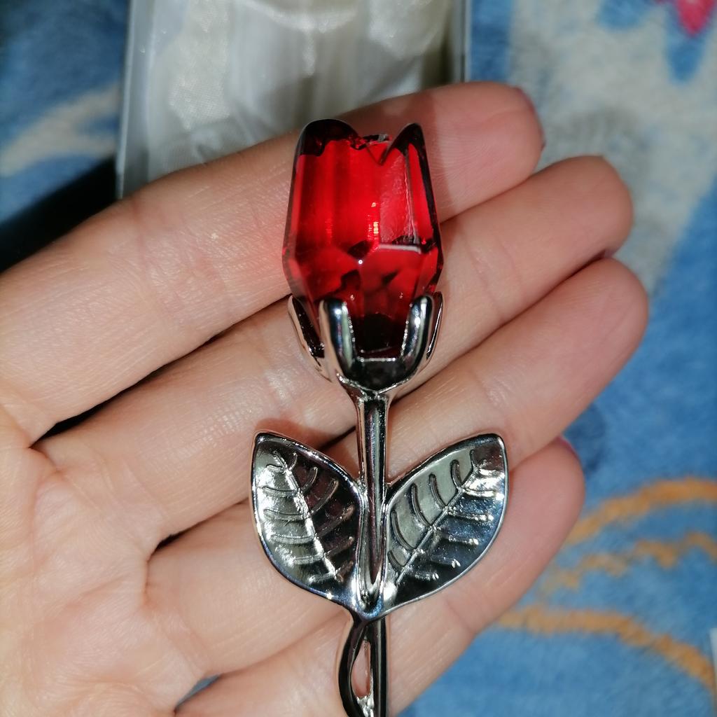 38 дней шло До Москвы. Немного разочаровал размер, всего 9 см. Я думала, что это будет более длинная розочка. Сама роза из металла, а бутон акриловый.