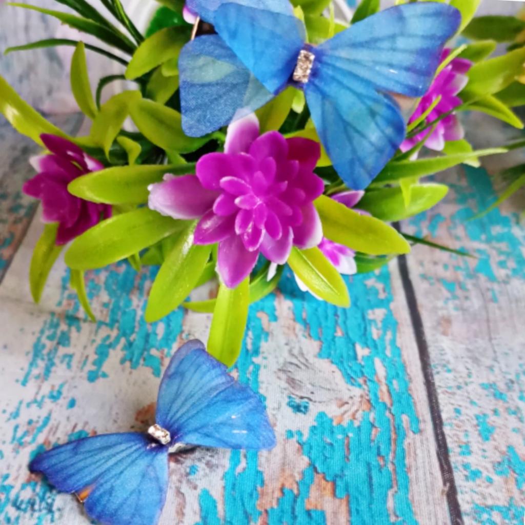 Заколки-бабочки🦋 Выбрала в голубом цвете из 5 вариантов. Идут по 2 штуки. Очень нежные , из тонкой ткани. По центру стразики. Волосы держат хорошо. Заколочки -прищепки.
