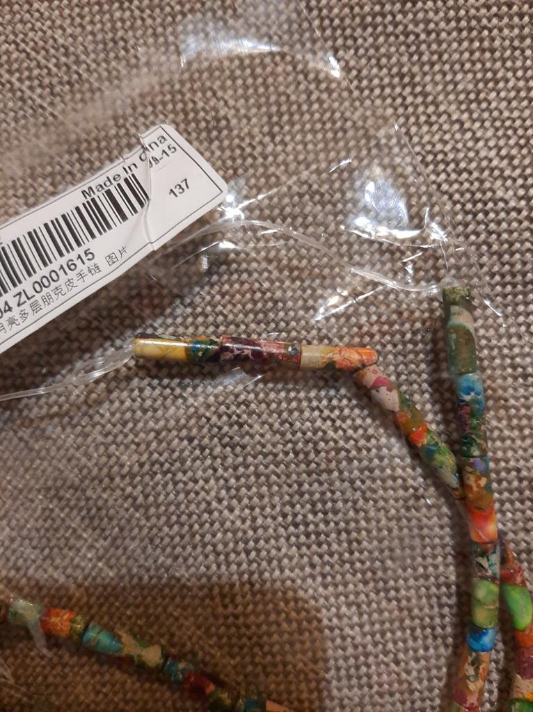 Ожидала с нетерпением. Получила.... Бусины разноцветные, но цветовая гамма темнее чем на фото продавца. Длина нити и размер бусин соответствуют описанию. Одна бусина на нитки уже сломана. И самое главное- обещали камень, а прислали какой-то композиционный материал. Таких денег он не стоит. Если бы увидела на рынке, то точ но бы брать не стала!