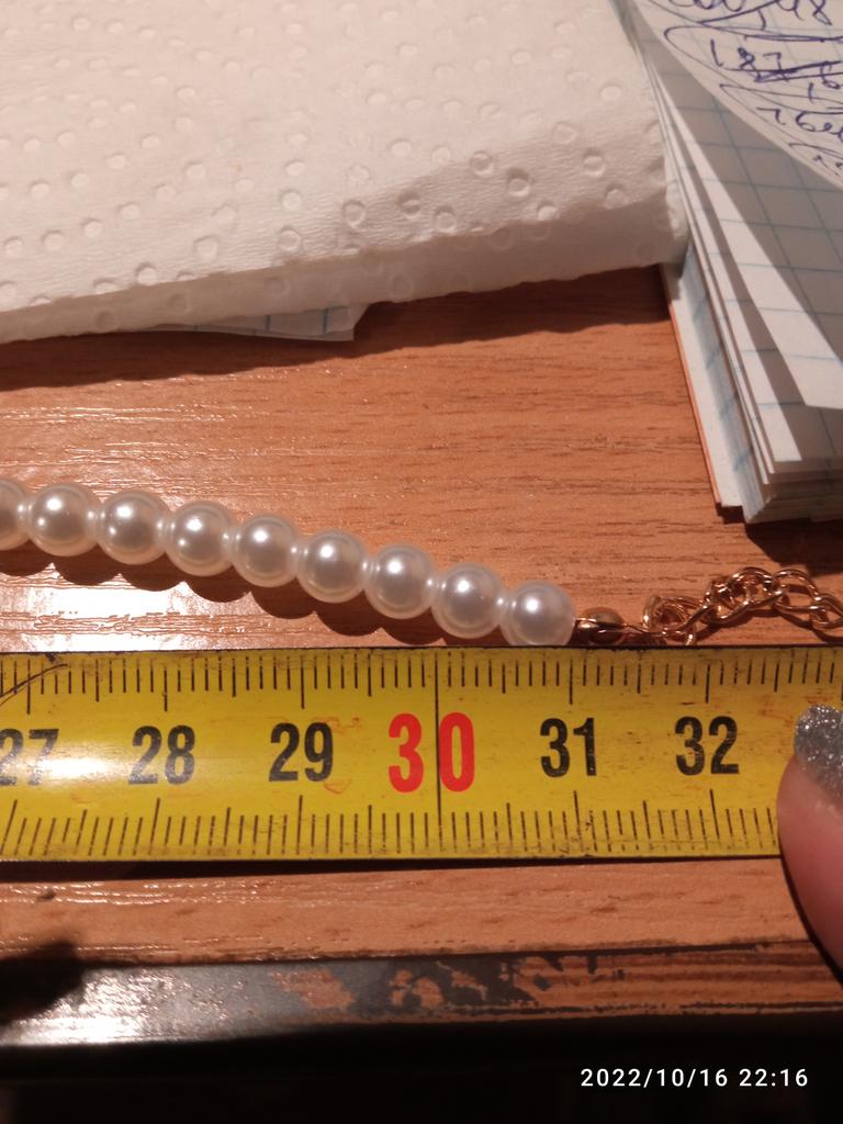 Если кому-то нравится ощущение удавки на шее, то это для вас. Если застегнуть шире, сама "нитка" бусин кривая. Диаметр бусин 0.6??? 0.5! Я не поленилась. Длина 31 см (вместо 33). Количество бусин 58. Итого. Диаметр одной бусины 0.5344.... Это не 0.6. Размер не соответствует. На утренник ребенку сойдёт на один раз. Совершенно дёшево смотрится. Жалею выброшенные деньги.