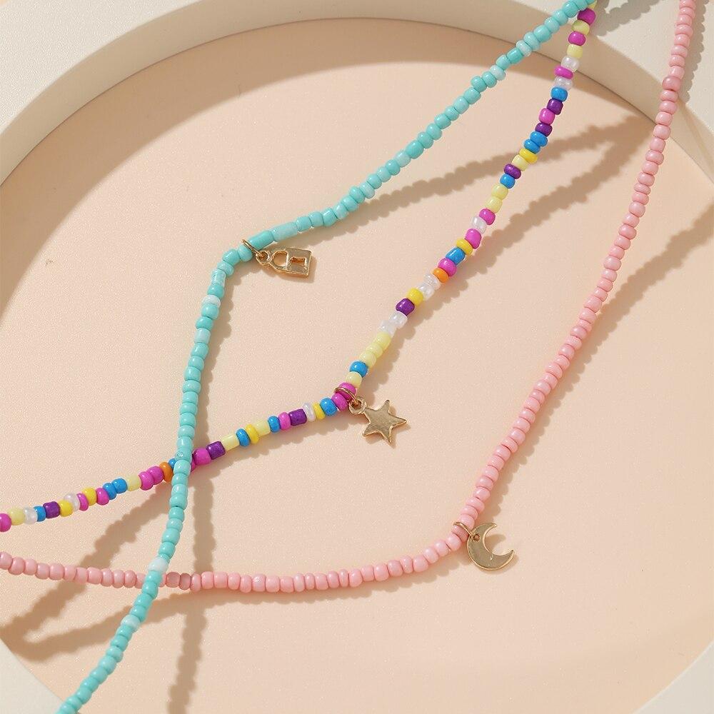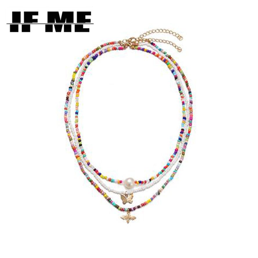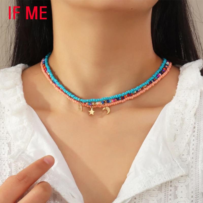 iF ME Богемное многослойное ожерелье из бисера со звездой и луной и бабочкой, ожерелье для женщин, модное пляжное простое колье с замком, подарок