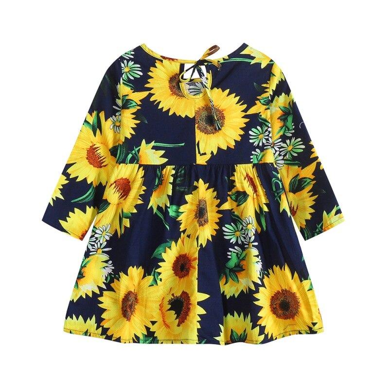 Детское платье с принтом и круглым вырезом для маленьких девочек, осеннее милое детское платье принцессы с цветочным принтом для маленьких девочек