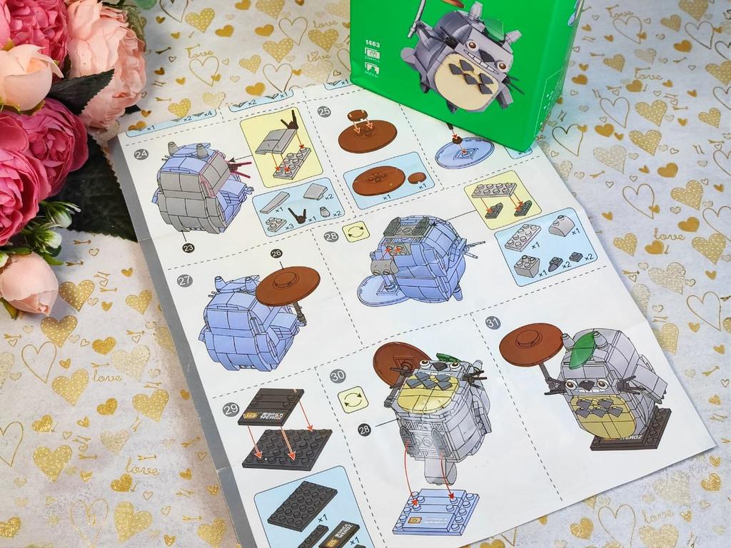 Замечательный конструктор с любимым мультипликационным персонажем Тоторо. Комплект полный, есть инструкция, собирается довольно неплохо.