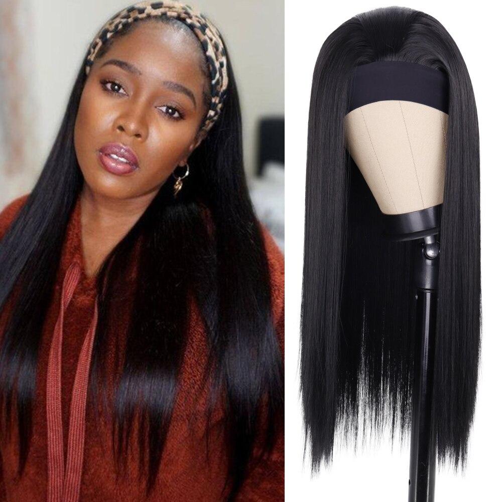 MERISIHAIR Длинные черные прямые парики с повязкой на голову, термостойкие парики из синтетических волос, парик машинного производства для чернокожих женщин