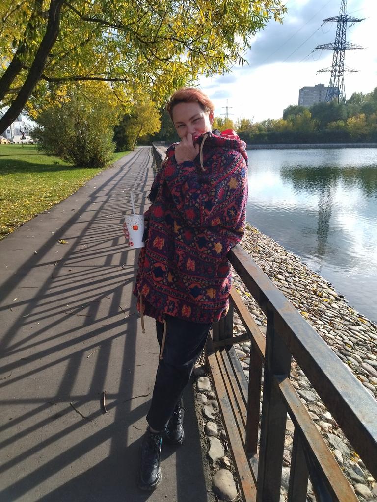 Получила свою курточку. Ждала её с нетерпением и очень переживала, что не подойдёт. Но, всё более, чем хорошо. Куртка лёгкая, мягкая и очень уютная. Цвет яркий, но не бьёт по глазам. Слегка приглушённый. Теперь о размерах. Фактические размеры изделия. ОГ 168 см, ОБ 160 см, длина по спинке 82 см, ширина рукава 36 см. Мои параметры ОГ 130 см, ОБ 137 см. Мне куртка свободная. Даже очень. Рост у меня 168 см. Длинна тоже хороша. А вот с рукавом могут быть проблемы. У меня руки короткие, и мне рукава только, только в длину. Измерить длину рукава на куртке сложно. Рукав сильно спущен и вот в месте, где он пришит к самой куртке узковат. Меряйте руку чуть выше локтя. У меня зазор всего два сантиметра. Не критично, но хотелось бы посвободнее. А в остальном всё очень понравилось. И капюшон очень уютный. Вообще из куртки вылезать не хочется. Мягко и тепло.