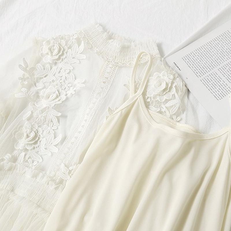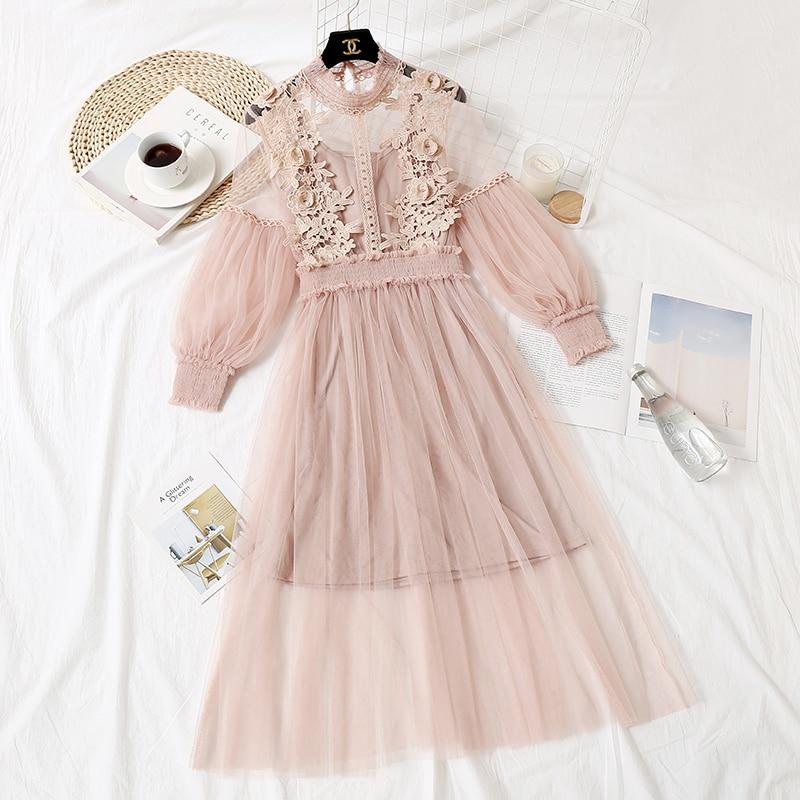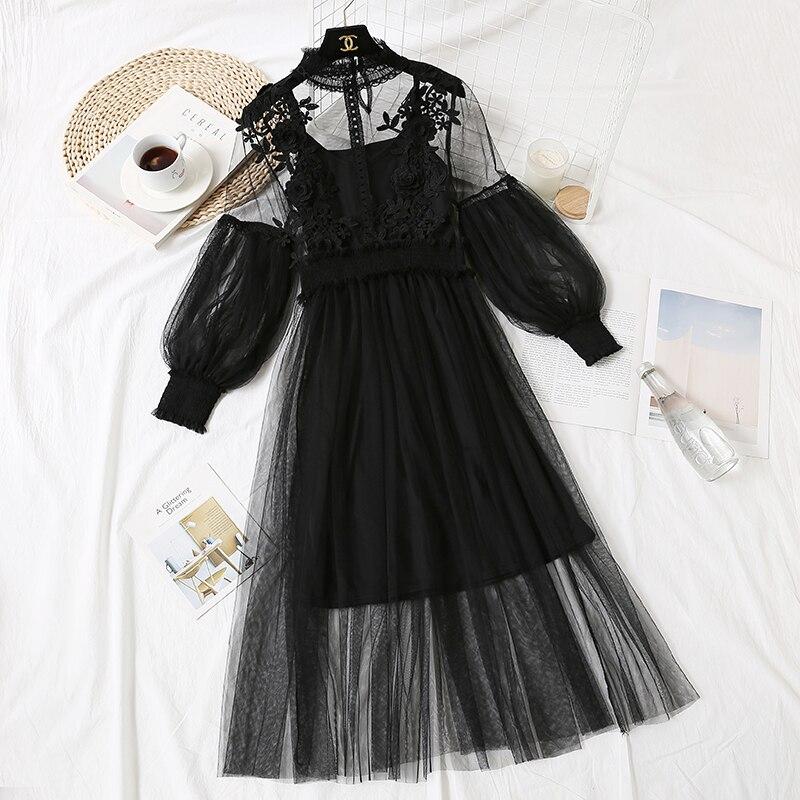 Женское кружевное платье с цветочным узором, женское винтажное элегантное длинное платье из вуали с рукавами-фонариками, женские платья принцессы на крючках, комплект из 2 предметов 12041