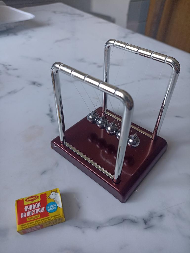 Оказался очень маленьким по габаритам. Но это не главное. Движения маятника затухают буквально на первой минуте. Я думала, маятник будет колебаться достаточно долго, но увы... По прошествии времени не могу улучшить свой отзыв. Это породия на маятник Ньютона. Жаль потраченных средств и времени ожидания товара
