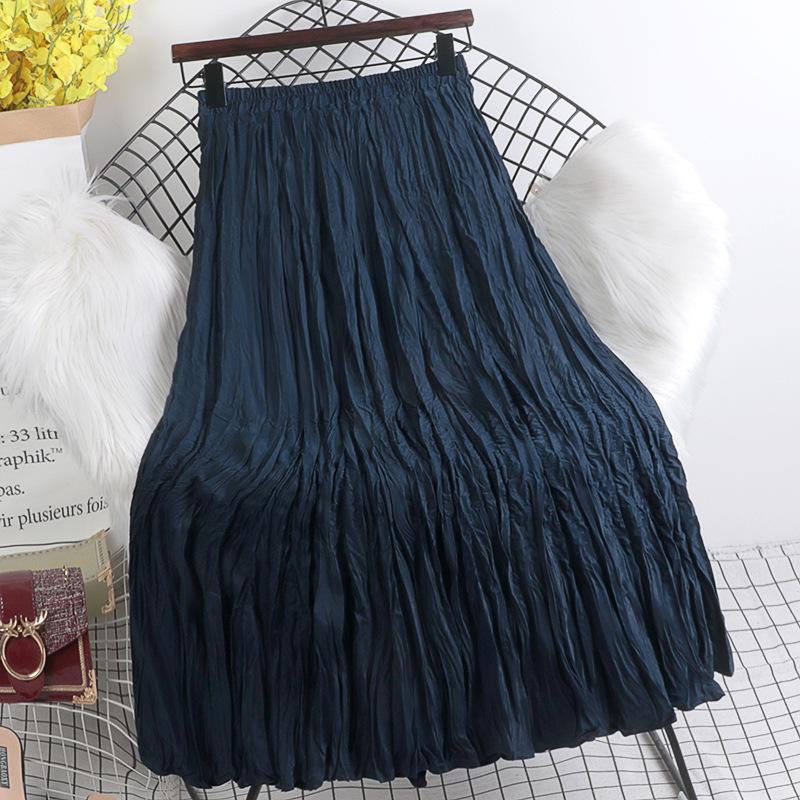 Осенние и зимние женские юбки, корейская юбка с рюшами, элегантная нижняя часть с высокой талией, тонкая плиссированная юбка со складками, большие размеры