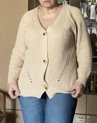 КАРДИГАН,в бежевом цвете. Подошёл на 48,-50, впритык,рукава немного короткие.качество хорошее . Рекомендую